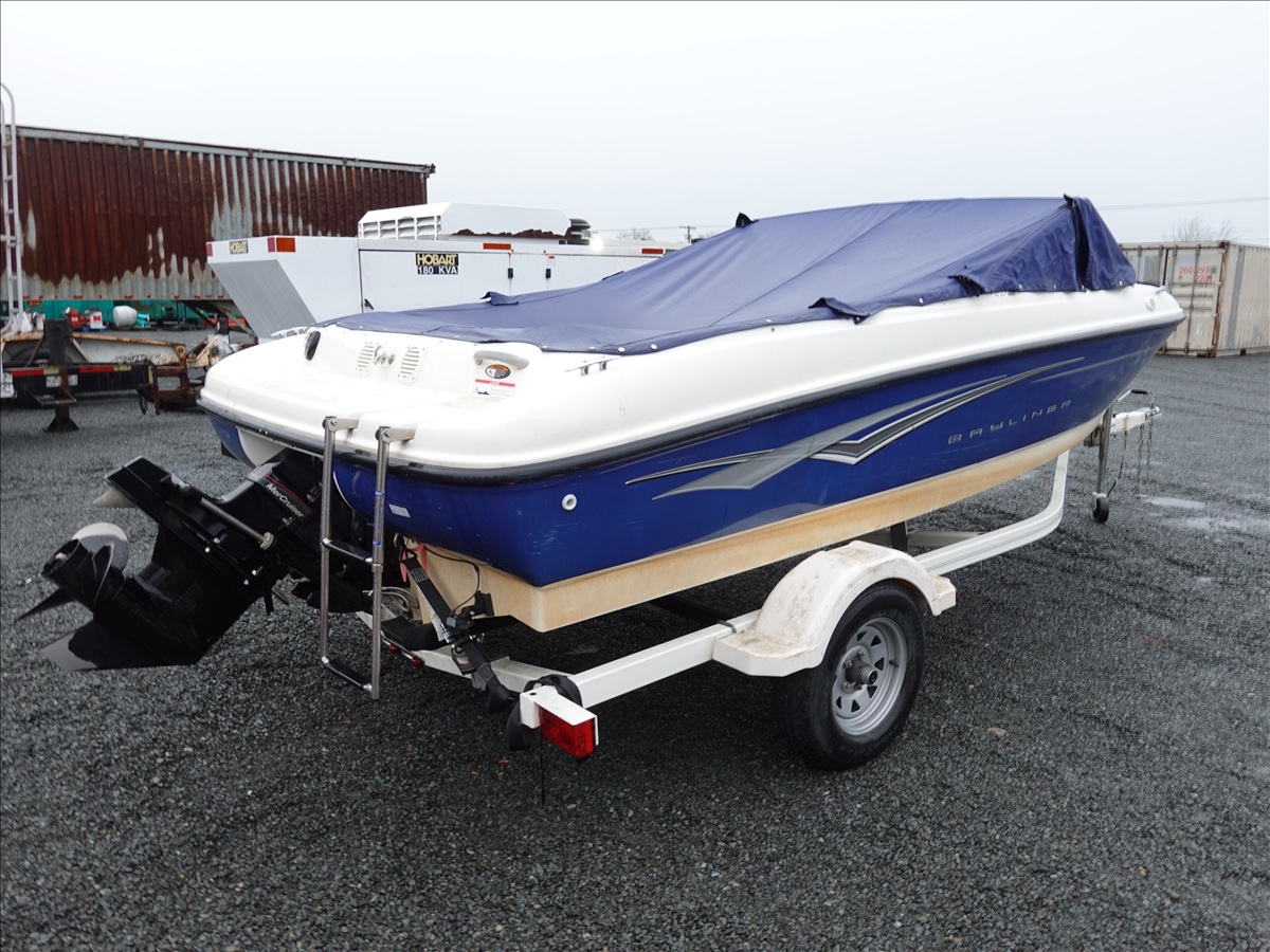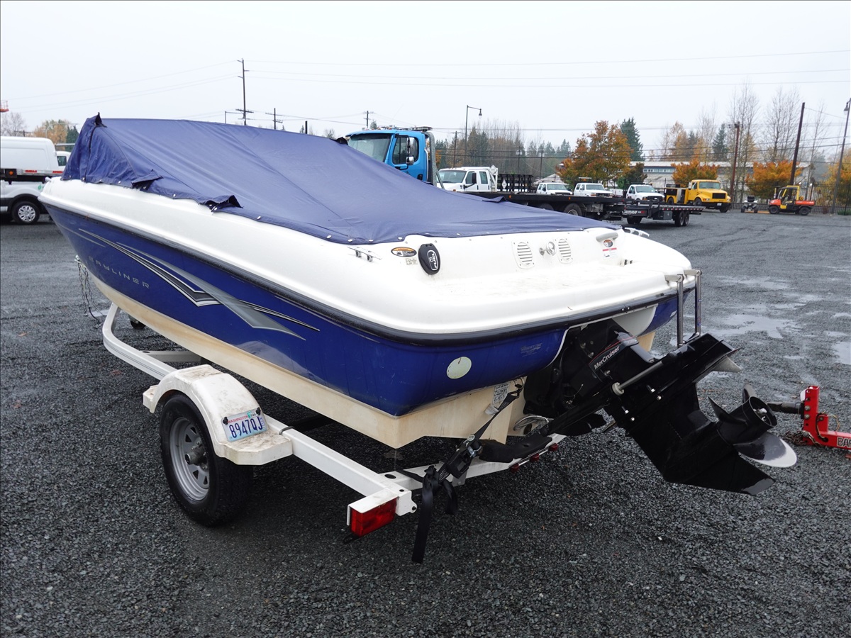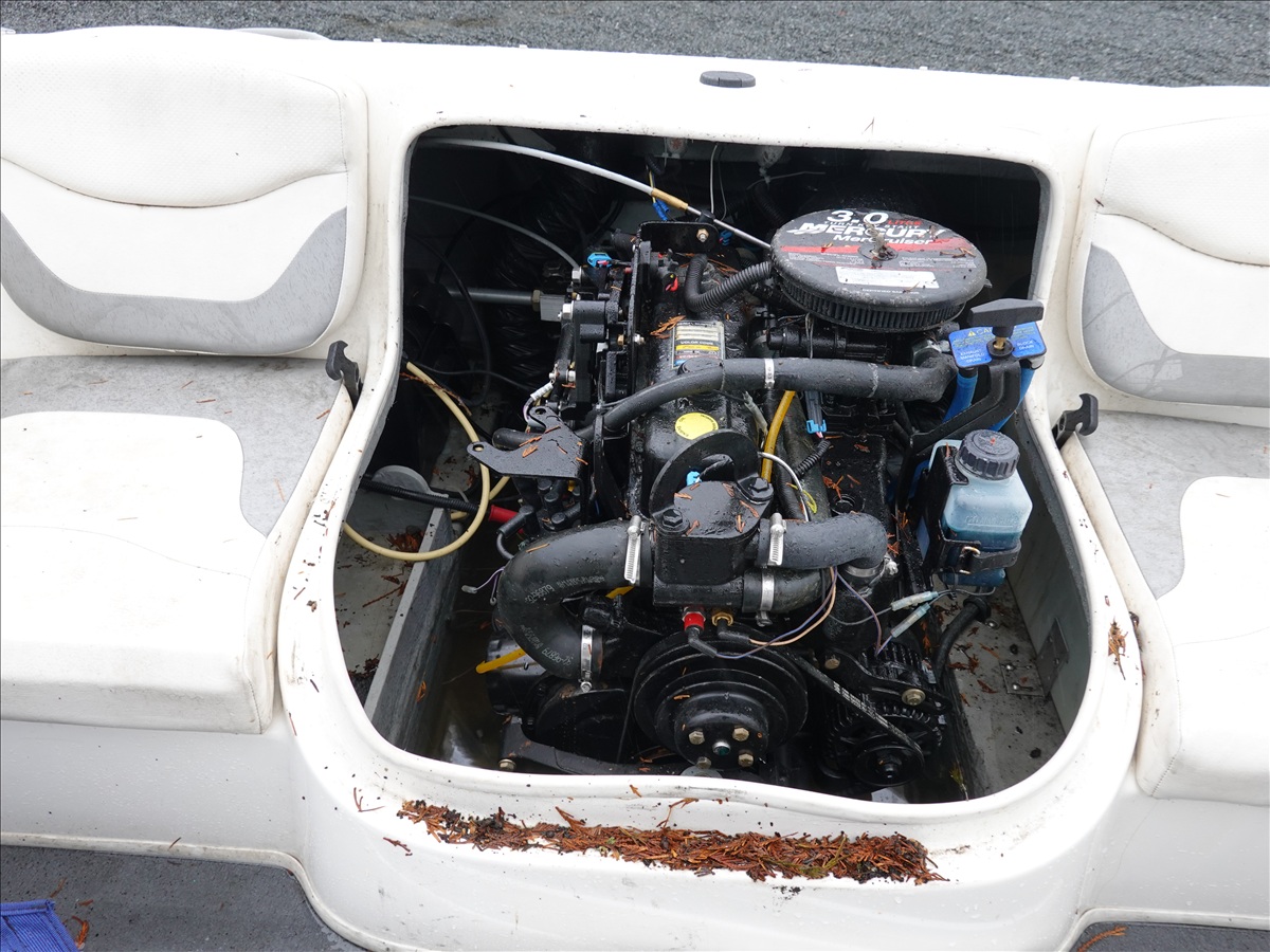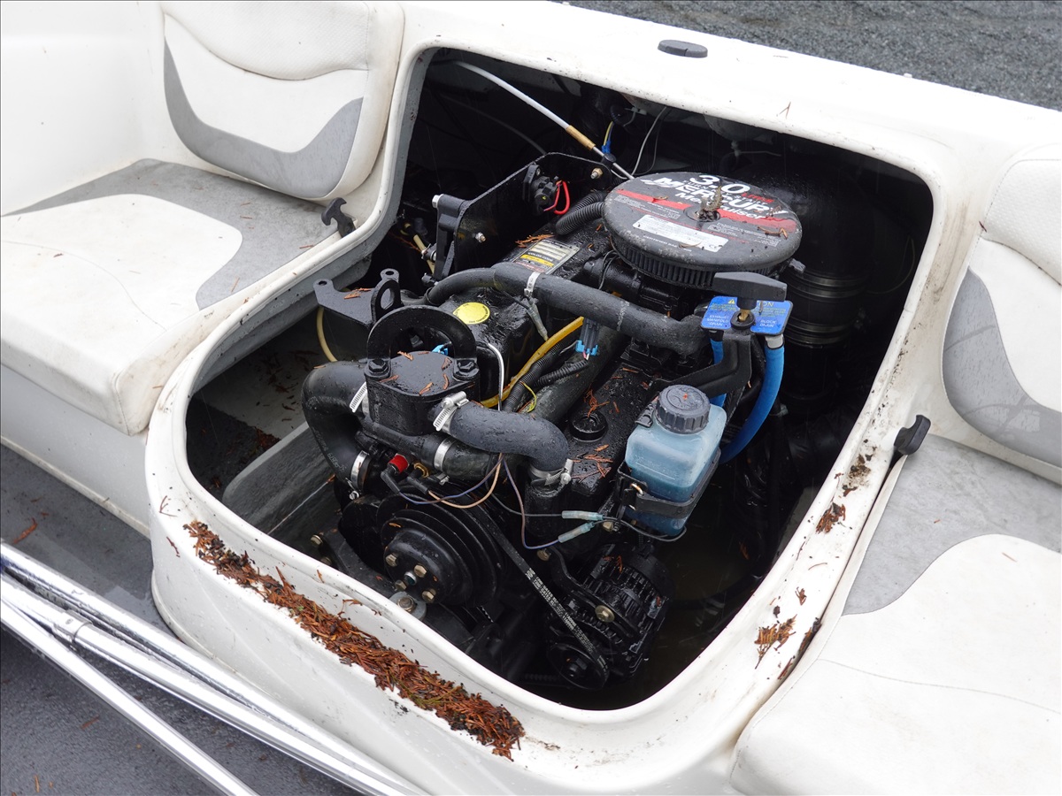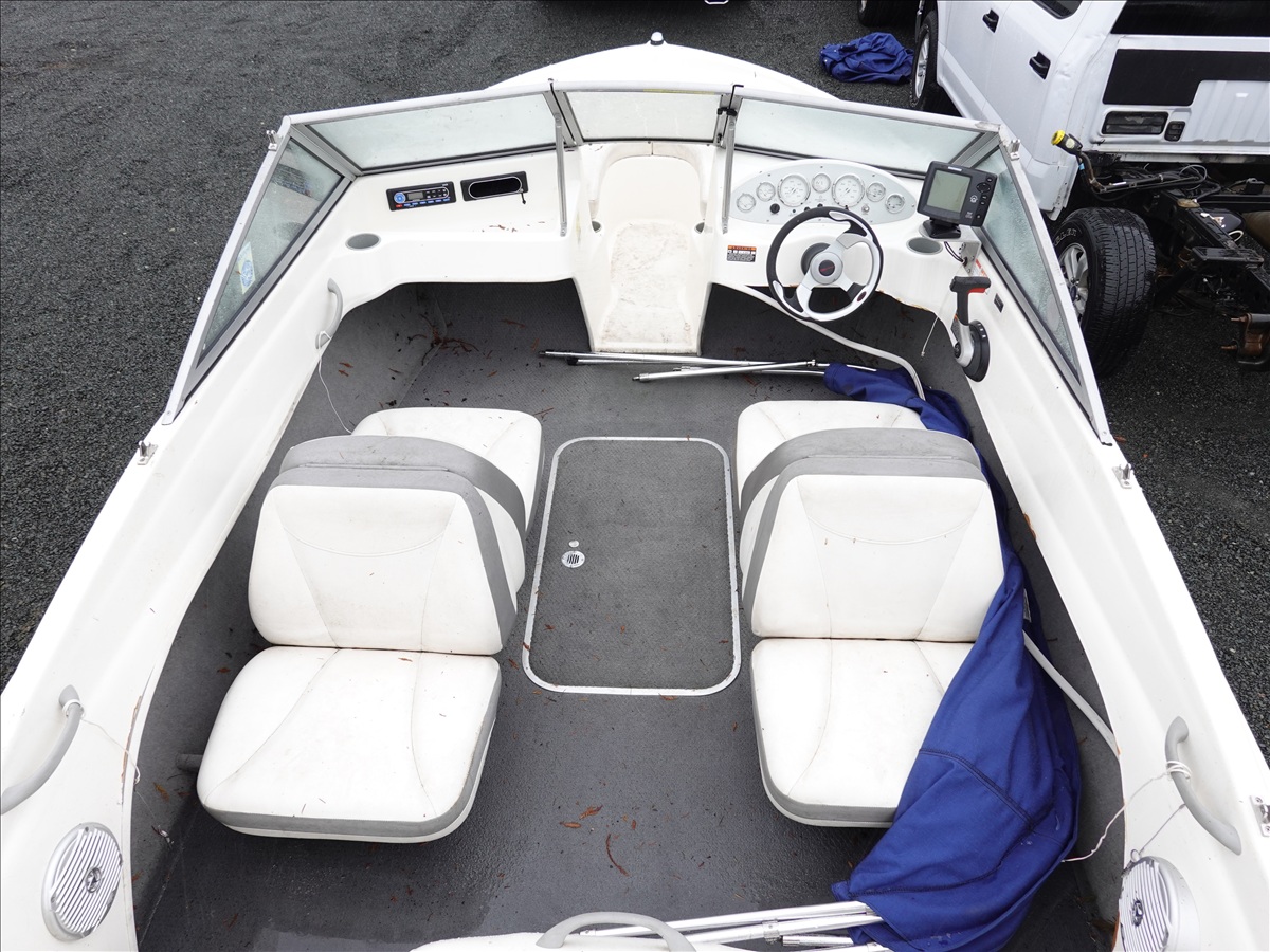 17' OPEN BOW RUNABOUT BOAT, MERCRUISER 4 CYL INBOARD/OUTBOARD, ALPHA ONE OUT DRIVE, CANVAS COVERS W/ 2008 KARAVAN S/A BOAT TRAILER (TRAILER S/N: 5KTBS19158F203036)