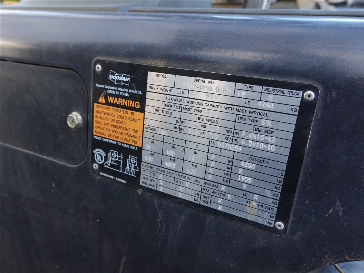 2015 DOOSAN G25E-5 FORKLIFT LPG