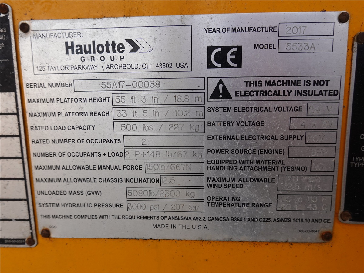 2017 HAULOTTE 5533A TOWABLE ARTICULATED BOOM LIFT