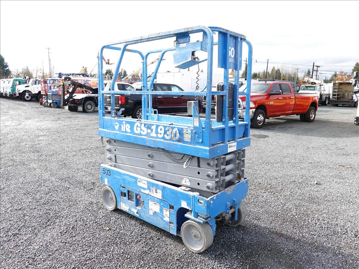 SCISSOR LIFT, 19' PLATFORM HEIGHT, 500 LB CAPACITY, A/C RECEPTICAL AT PLATFORM