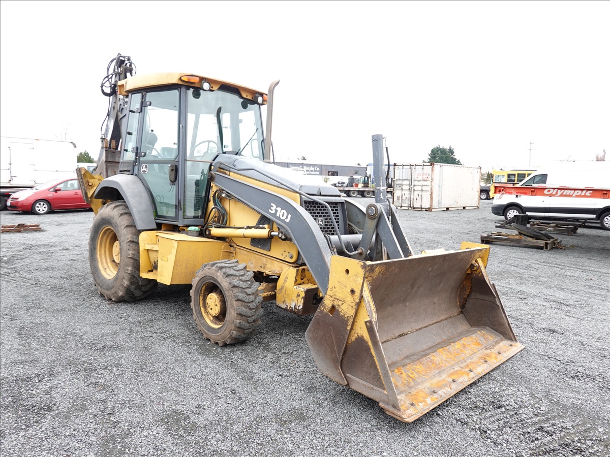 4X4 BACKHOE, 72 HP 4045D, 4F/4R POWERSHIFT, 4-IN-1 LOADER BUCKET, EXTENDAHOE, 22" BUCKET, AUX HYD, CAB (**CAB GLASS DAMAGED/MISSING**)