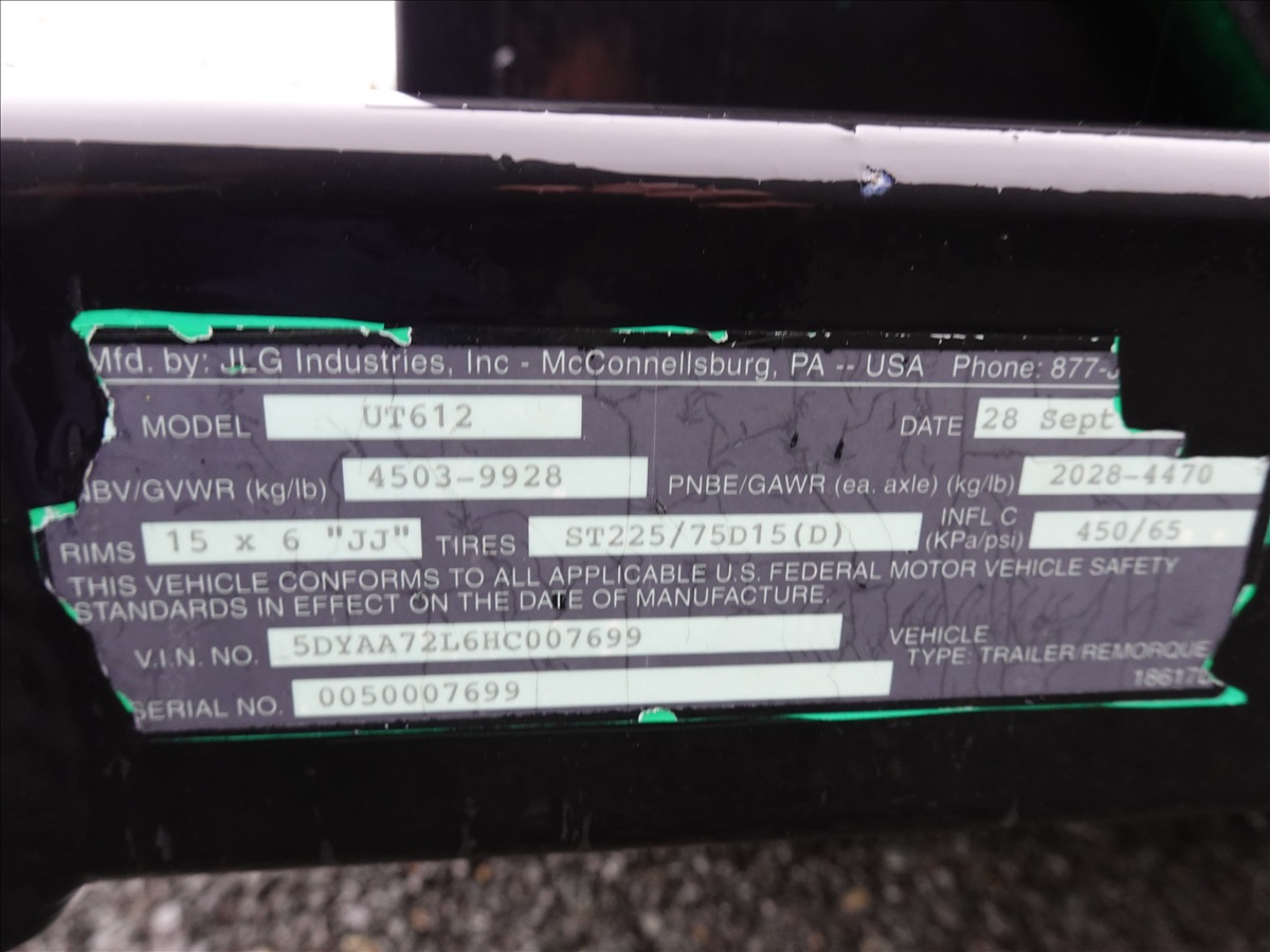 T/A, 12' X 6' 9,928 LB GVWR HYDRAULIC 12V POWER DECK UTILITY TRAILER, SPRING SUSPENSION, SWING REAR GATE, SURGE BRAKES, 225/75R15