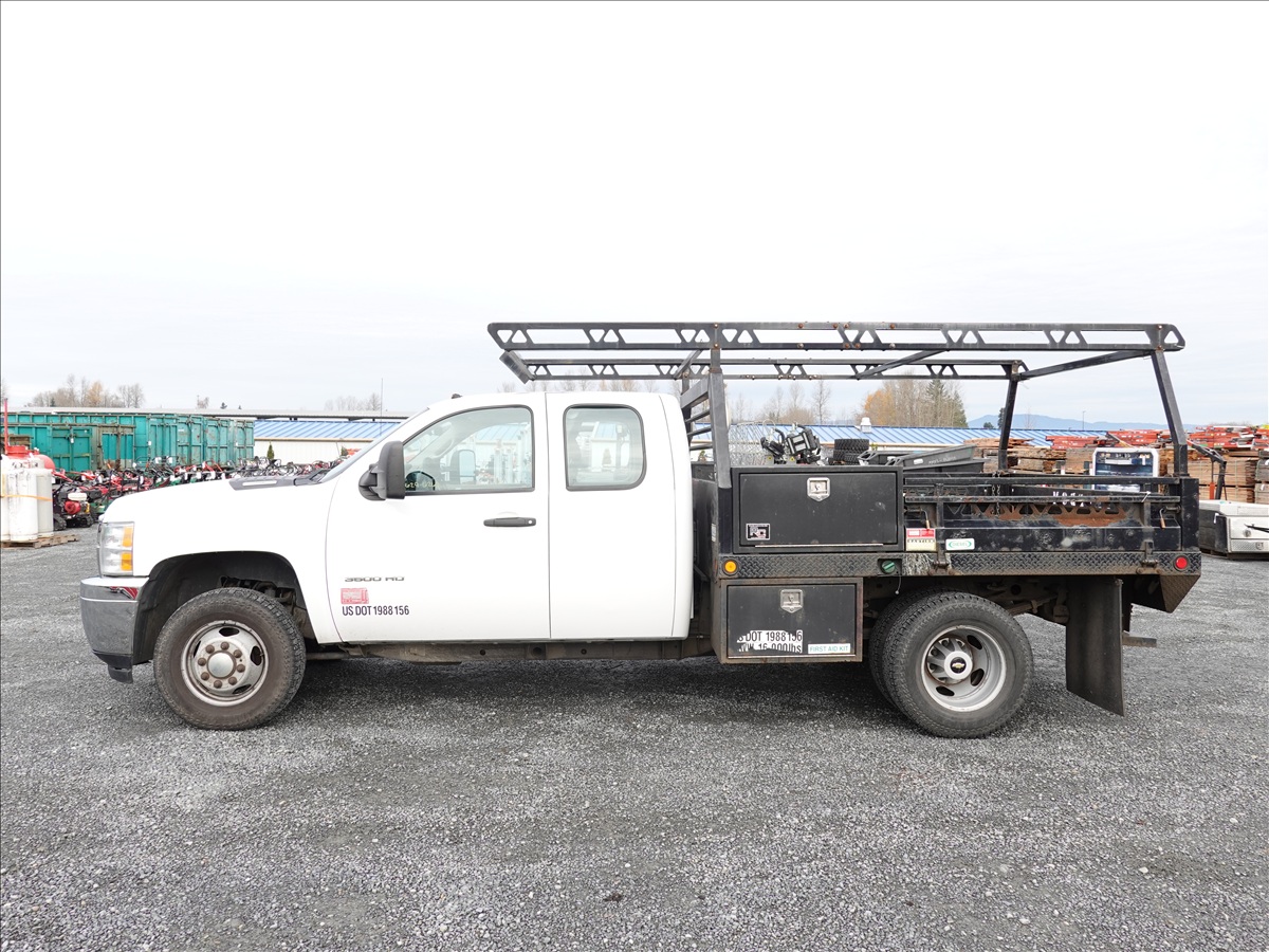 2013 CHEV 3500 EXT CAB FLATBED DURAMAX 4WD