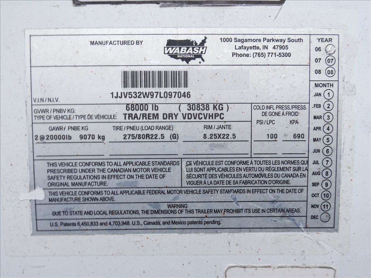 T/A, 53' X 8'6" 68,000 LB GVWR DRY VAN TRAILER, SPRING SUSPENSION, BARN DOORS, A/B, 295/75R22.5