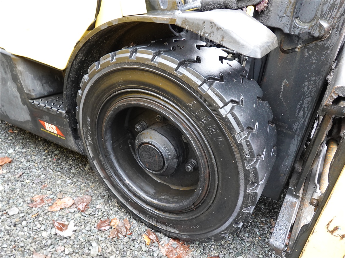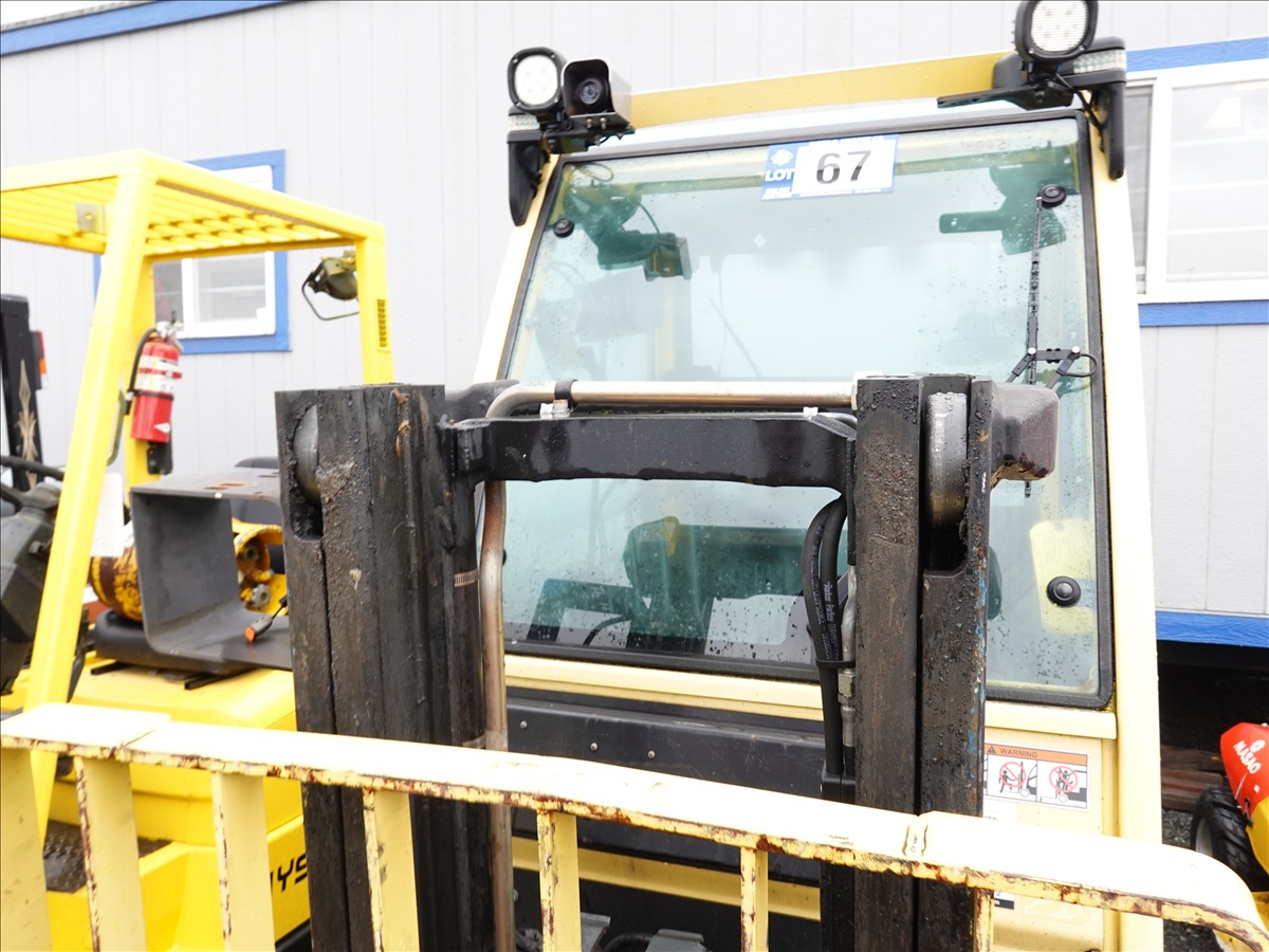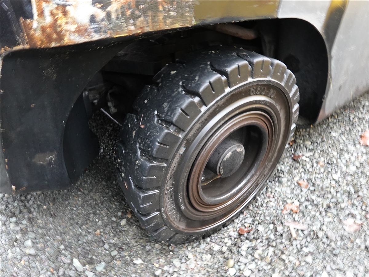 6,500 LB SOLID TIRE FORKLIFT, 79" FORK HEIGHT, 2 STAGE MAST, SIDE SHIFT, FORK POSITIONERS, 54" FORKS, 4 CYL LPG, CAB (UNABLE TO READ HOUR METER )