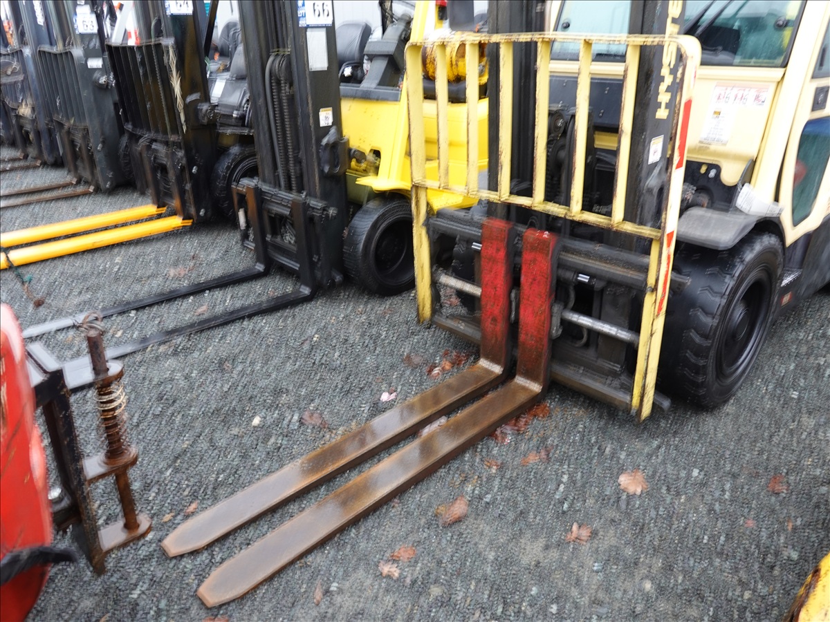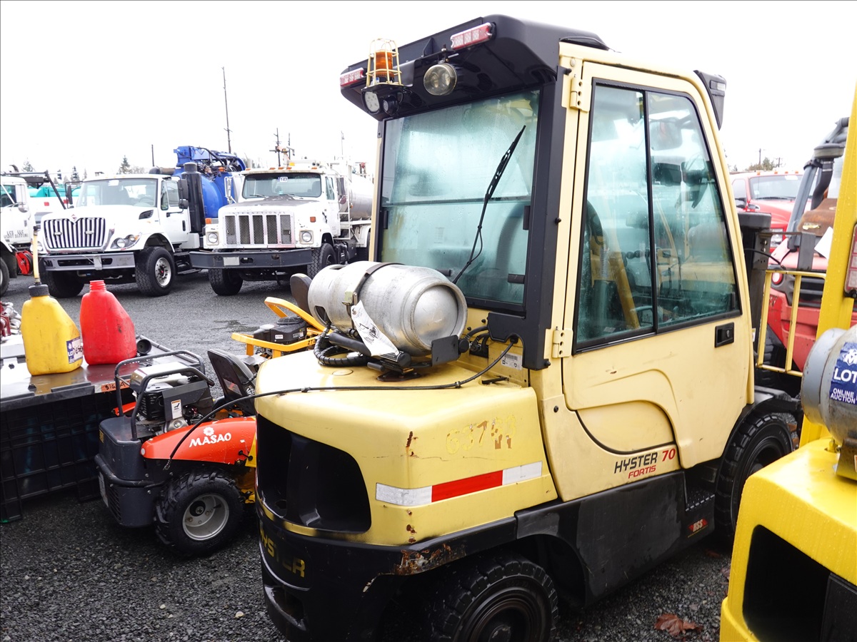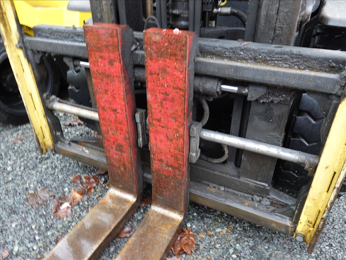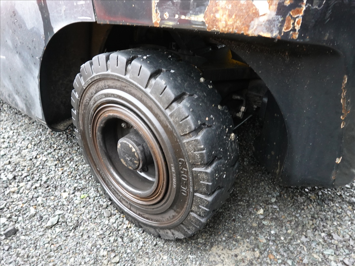 6,500 LB SOLID TIRE FORKLIFT, 79" FORK HEIGHT, 2 STAGE MAST, SIDE SHIFT, FORK POSITIONERS, 54" FORKS, 4 CYL LPG, CAB (UNABLE TO READ HOUR METER )