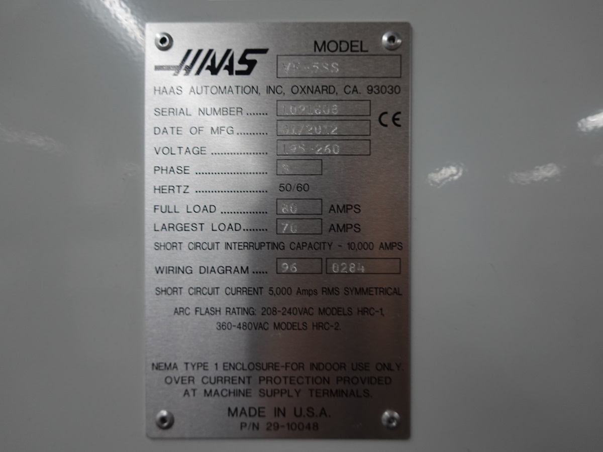 CNC MILLING MACHINE, ATC, HAAS CONTROLS, JORGENSEN CHIP CONVEYOR, 30"X60" TABLE, 195/260V, 3-PHASE