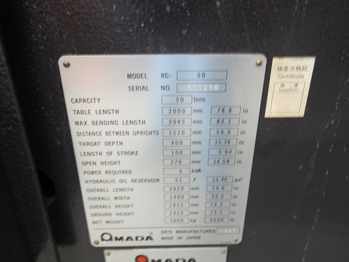 50-TON CNC PRESS BRAKE, 79" WIDE BACK GAUGE, NC9-EX II CONTROLS, 230/460V, 3-PHASE