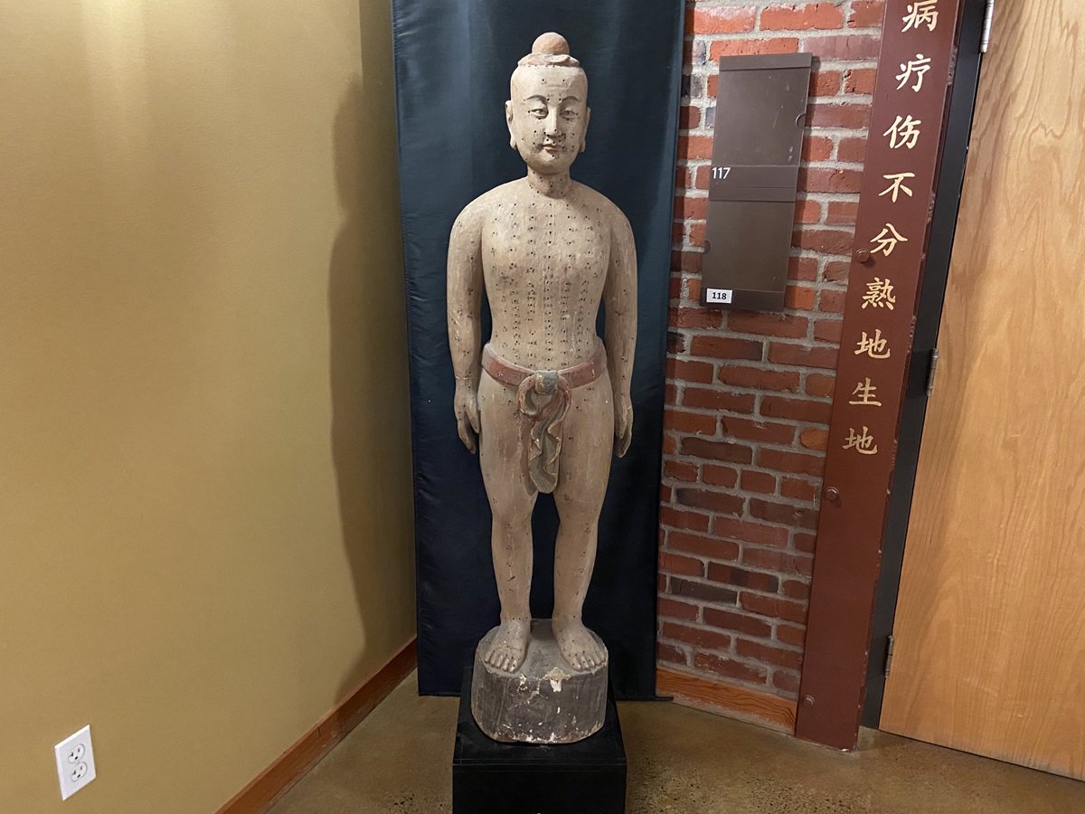 PAIR OF 64" PAPER MACHE & WOOD ACUPUNCTURE DEMONSTRATION FIGURES W/WOOD PEDESTAL BOXES
