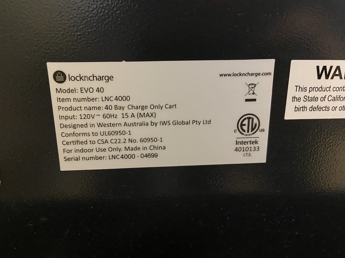 26"x33.5"x35" 40-BAY iPAD LOCKING CHARGER CART ON CASTORS; 120V