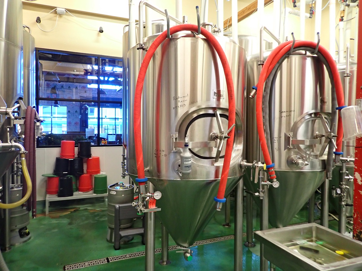 GROUP OF (4) JVNW 10 BARREL S/S JACKETED FERMENTATION TANKS, FRONT GATES, PROBES