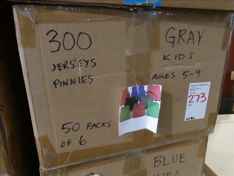 LOT, APPROX (300) SOCCER PINNIES/JERSEYS (CHILD, AGES 5-9, GRAY)