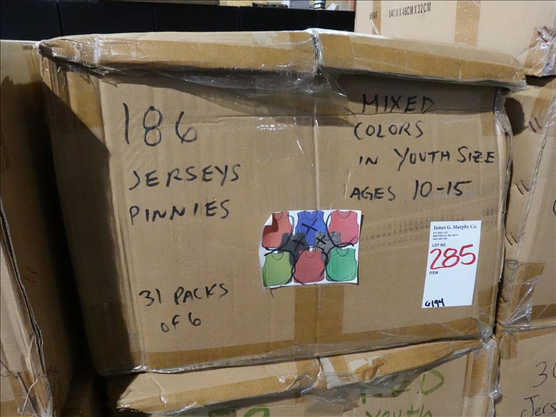 LOT, APPROX (186) SOCCER PINNIES/JERSEYS (CHILD, AGES 10-15, MIXED COLORS)