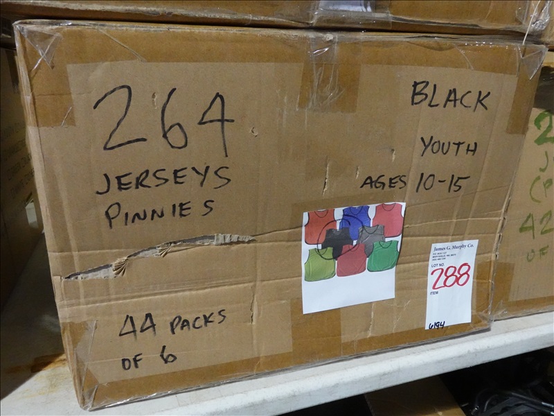 LOT, APPROX (264) SOCCER PINNIES/JERSEYS (YOUTH, AGES 10-15, BLACK)