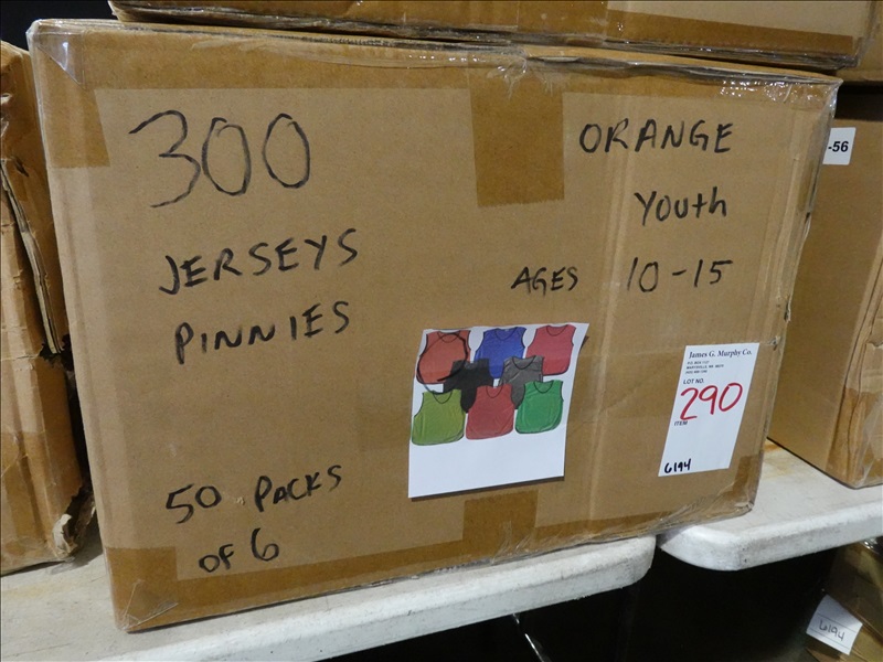 LOT, APPROX (300) SOCCER PINNIES/JERSEYS (YOUTH, AGES 10-15, ORANGE)