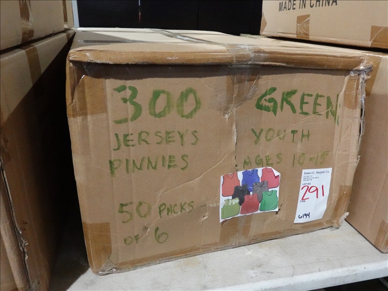 LOT, APPROX (300) SOCCER PINNIES/JERSEYS (YOUTH, AGES 10-15, GREEN)