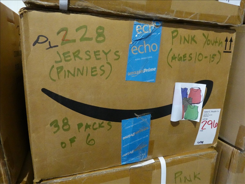 LOT, APPROX (228) SOCCER PINNIES/JERSEYS (YOUTH, AGES 10-15, PINK)