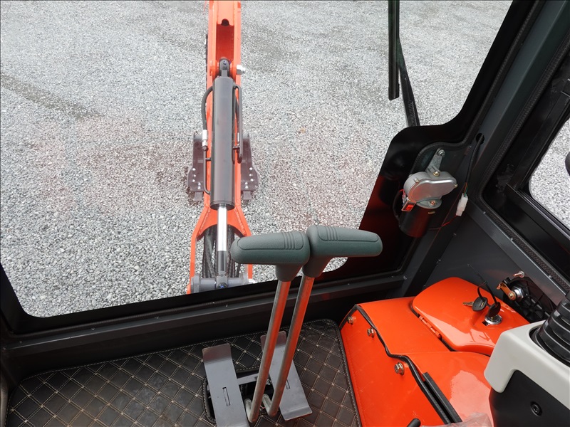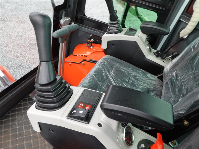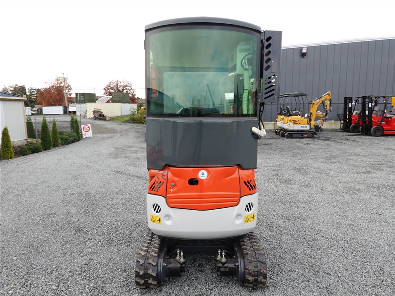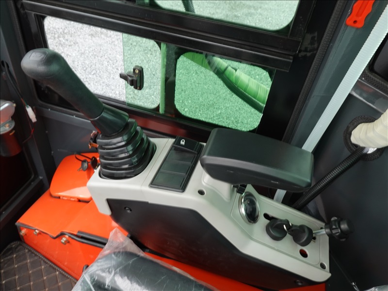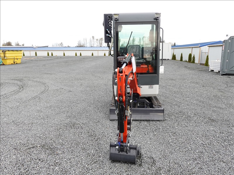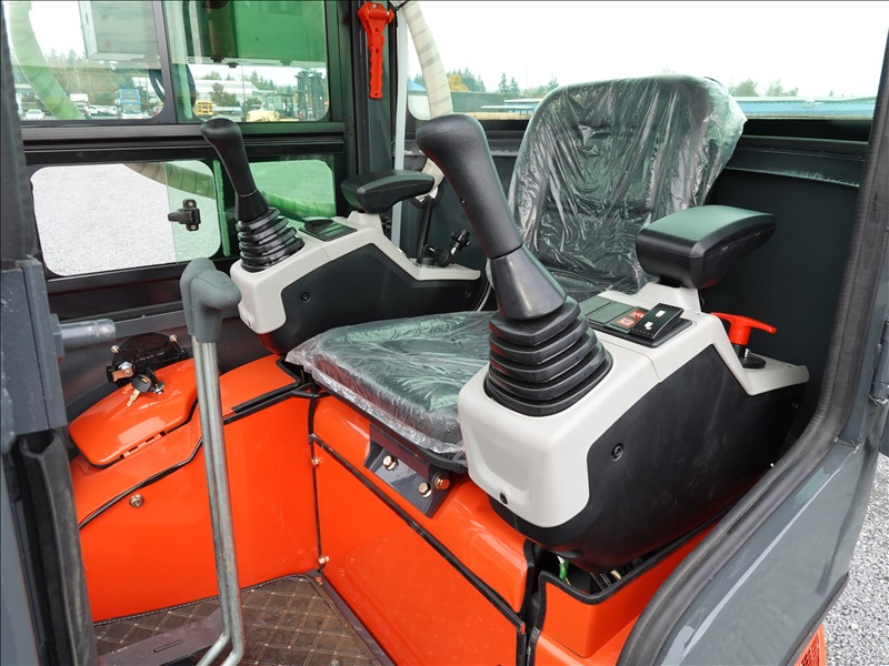 MINI EXCAVATOR, KUBOTA 3 CYL DIESEL, 13" BUCKET, SWING BOOM, HYD THUMB, BLADE, RUBBER TRACKS, A/C CAB