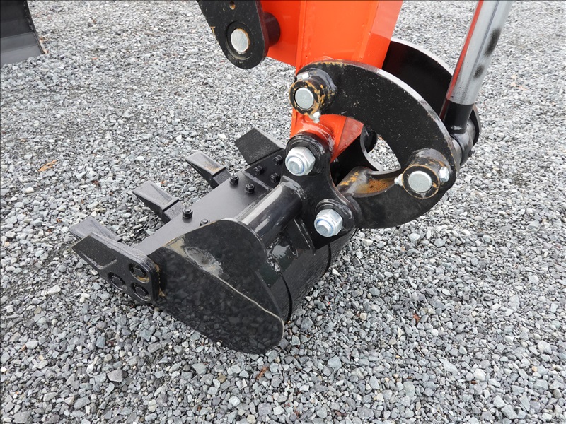 MINI EXCAVATOR, BRIGGS & STRATTON 13.5 HP GAS, 14" BUCKET, HYD THUMB, BLADE, RUBBER TRACKS, CANOPY