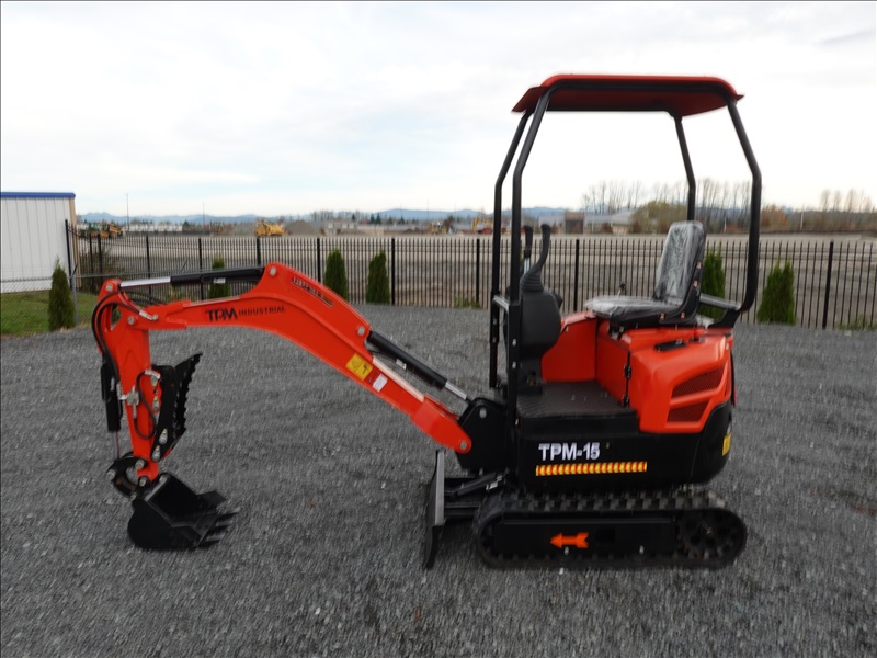 MINI EXCAVATOR, BRIGGS & STRATTON 13.5 HP GAS, 14" BUCKET, HYD THUMB, BLADE, RUBBER TRACKS, CANOPY