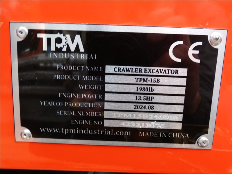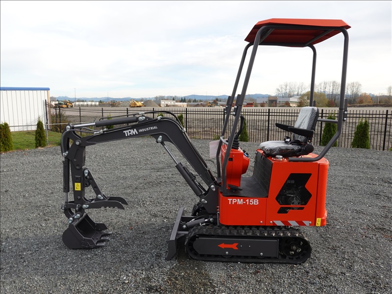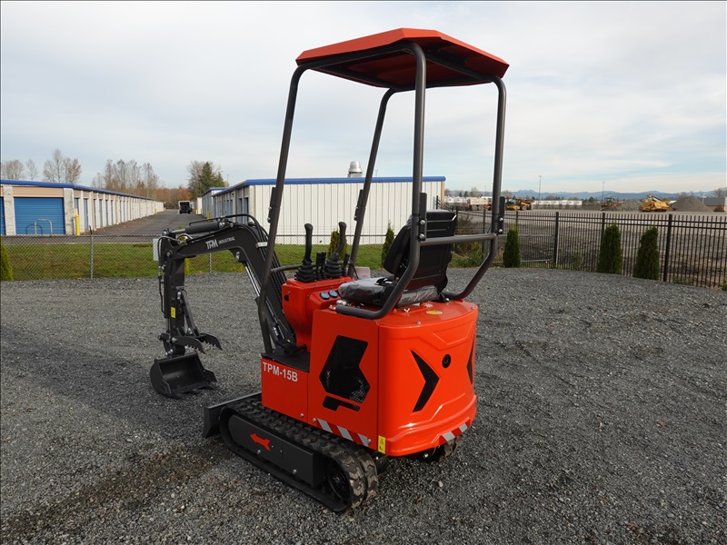 MINI EXCAVATOR, BRIGGS & STRATTON 13.5 HP GAS, 14" BUCKET, THUMB, AUX HYD, RUBBER TRACKS, CANOPY