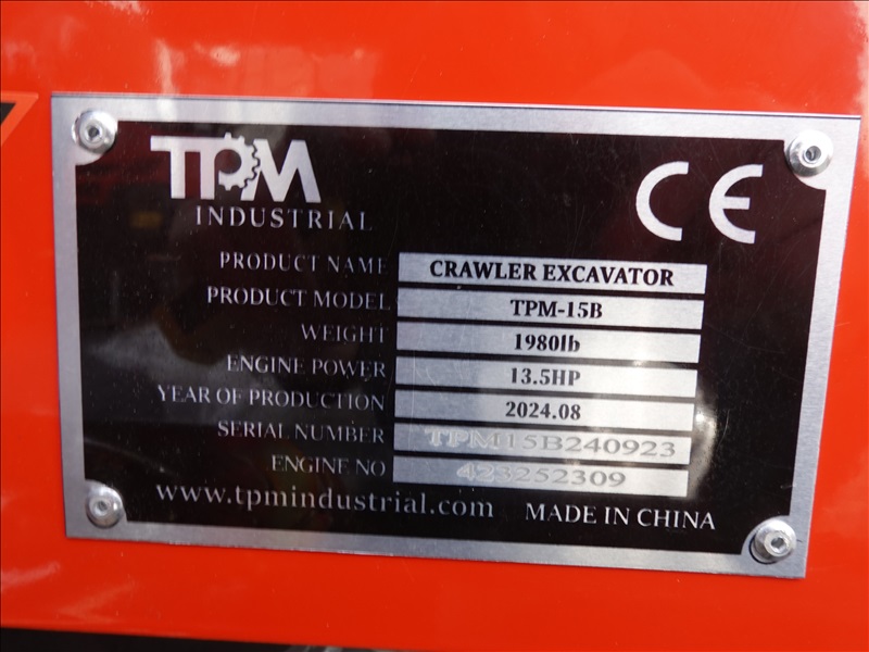 MINI EXCAVATOR, BRIGGS & STRATTON 13.5 HP GAS, 14" BUCKET, THUMB, AUX HYD, RUBBER TRACKS, CANOPY