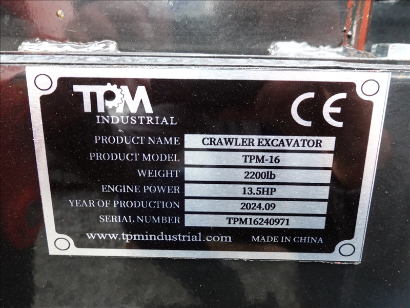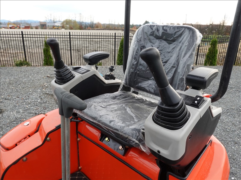 MINI EXCAVATOR, BRIGGS & STRATTON 13.5 HP GAS, 14" BUCKET, HYD THUMB, BLADE, RUBBER TRACKS, CANOPY