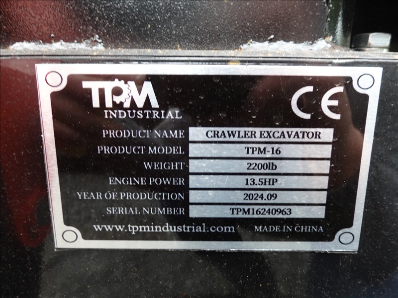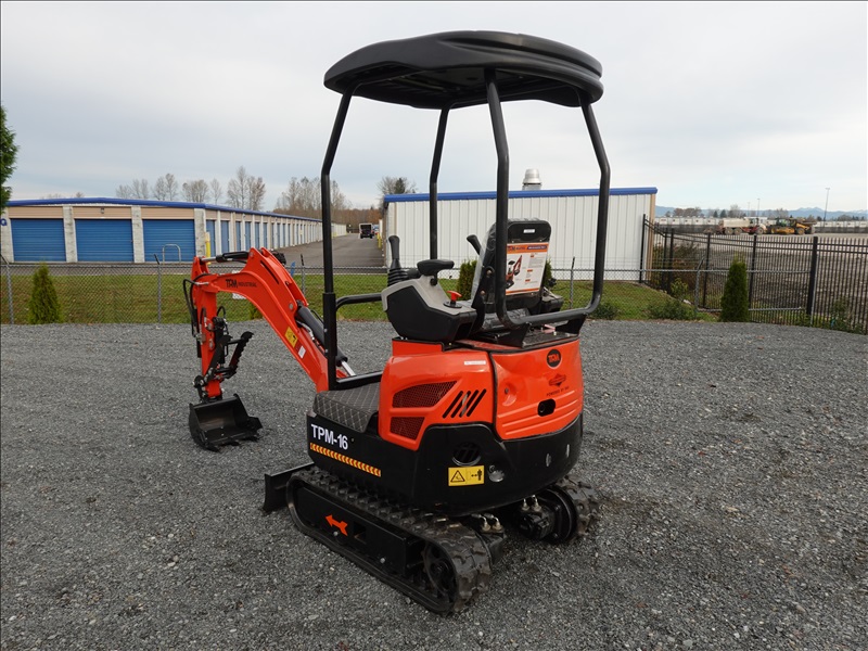 MINI EXCAVATOR, BRIGGS & STRATTON 13.5 HP GAS, 14" BUCKET, HYD THUMB, BLADE, RUBBER TRACKS, CANOPY