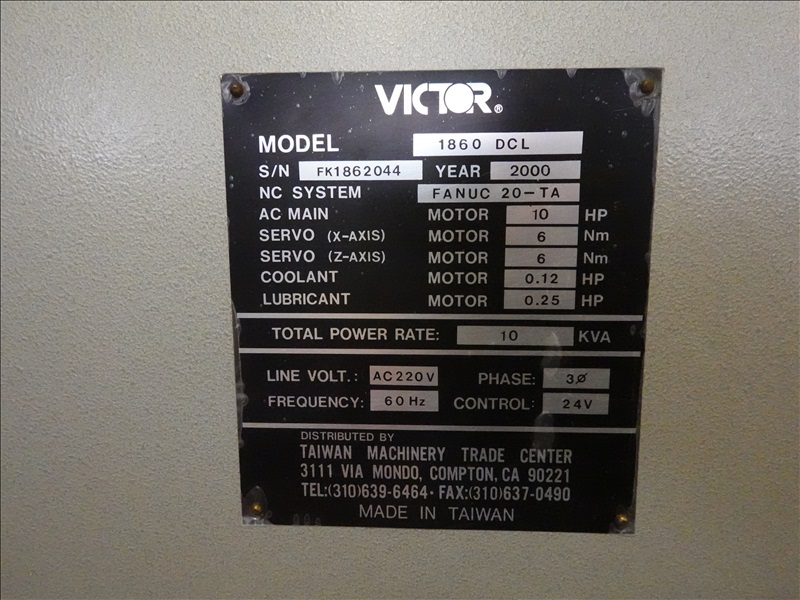CNC LATHE, 18" SWING, 60" BED, 2" THRU-SPINDLE, 10 HP, DORIAN SD410CA TOOL HOLDER, FANUC SERIES 20-T CONTROL, 220V, 3 PHASE (SPARE WIRING HARNES AND MANUALS INCLUDED)