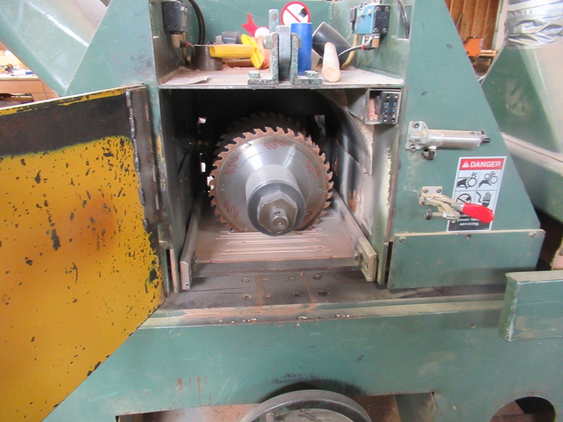 GANG RIP SAW, 12"W X 6" THROAT W/5' X 15" ROLLER CONVEYOR OUTFEED