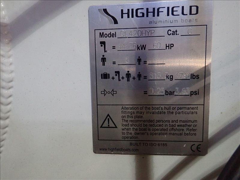 4.2M (13'9") RIGID INFLATABLE BOAT, MERCURY 1F41453GZ, 40 HP 4-STROKE OUTBOARD MOTOR S/N: 1C596854, HIN: CN-HFM08635K819