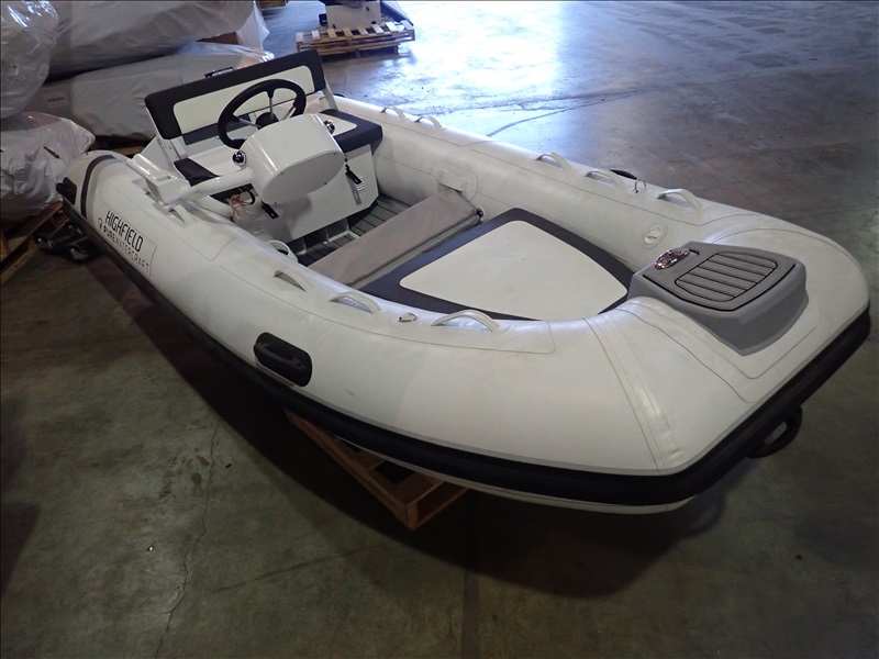 3.6M (11'9") RIGID INFLATABLE BOAT W/HELM & SEAT W/(1) WRAPPED HULL & (1) 4' X 4' X 18" BOX, HIN: HFM36273F323 (UNUSED, SOME ASSEMBLY REQUIRED, THROTTLE MOUNT MAY REQUIRE MODIFICATION TO ACCEPT A STANDARD THROTTLE)