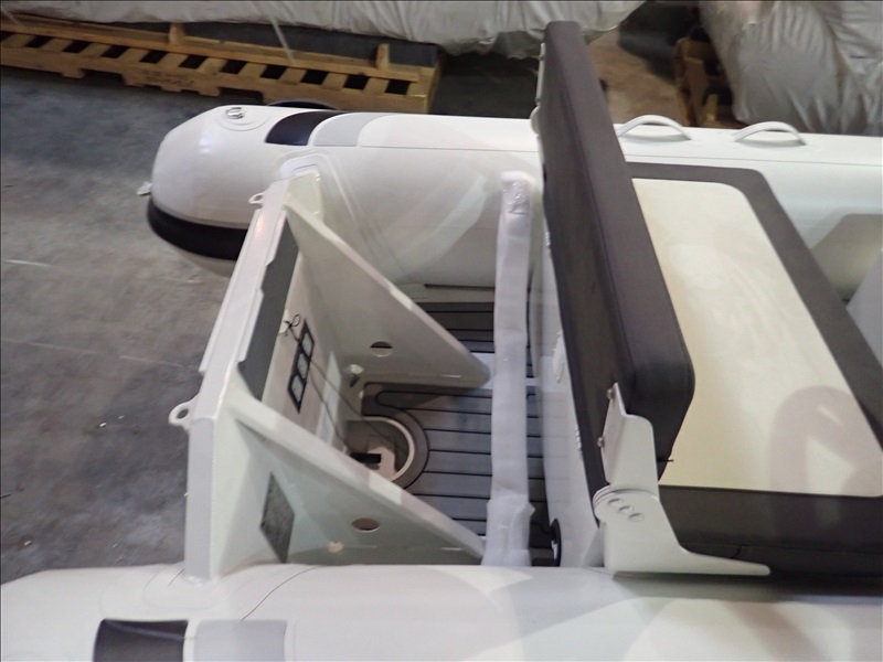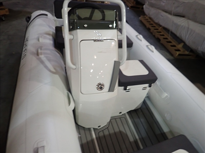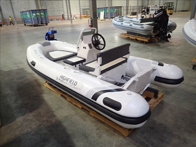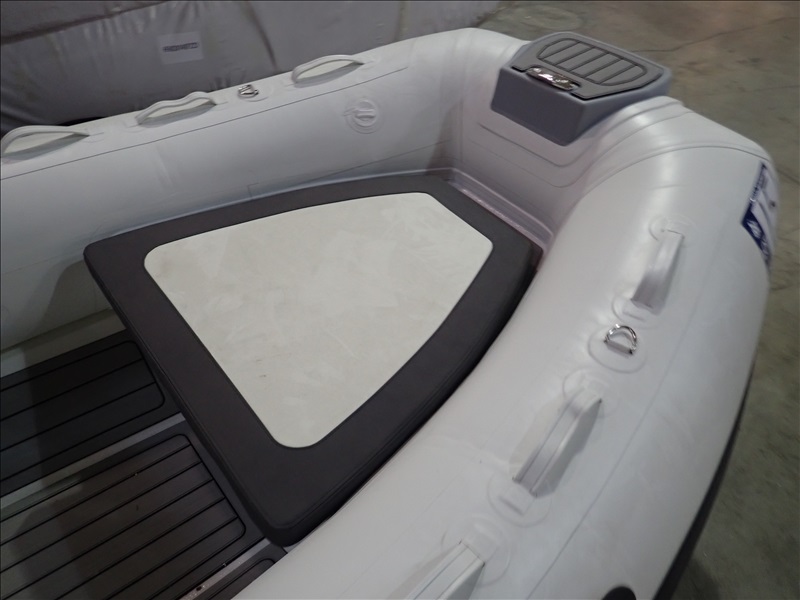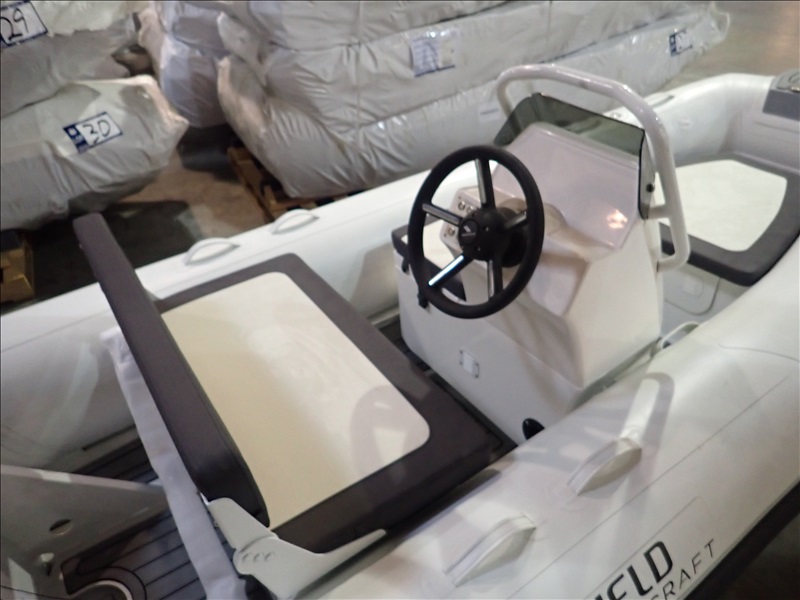 3.8M (12'5") RIGID INFLATABLE BOAT W/HELM & SEAT (UNUSED, SOME ASSEMBLY REQUIRED, BOAT MAY REQUIRE (5) RIVNUTS (NOT INCLUDED) TO BE INSTALLED IN FLOOR TO MOUNT HELM, THROTTLE MOUNT MAY REQUIRE MODIFICATION TO ACCEPT STANDARD THROTTLE)