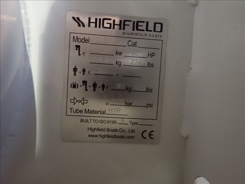 3.6M (11'9") RIGID INFLATABLE BOAT W/HELM & SEAT, HIN: HFM30131F223 (UNUSED, SOME ASSEMBLY REQUIRED, THROTTLE MOUNT MAY REQUIRE MODIFICATION TO ACCEPT A STANDARD THROTTLE)
