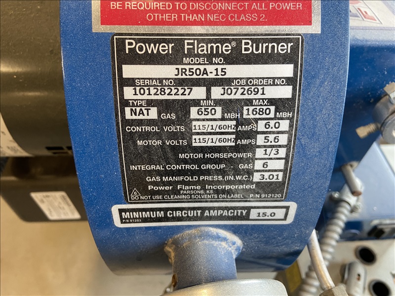 GAS BOILER W/POWER FLAME BURNER JR50A-15, INPUT: 1,680,000 BTU, OUTPUT: 1,377,500 BTU