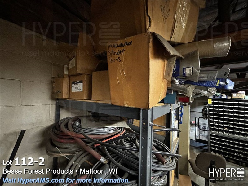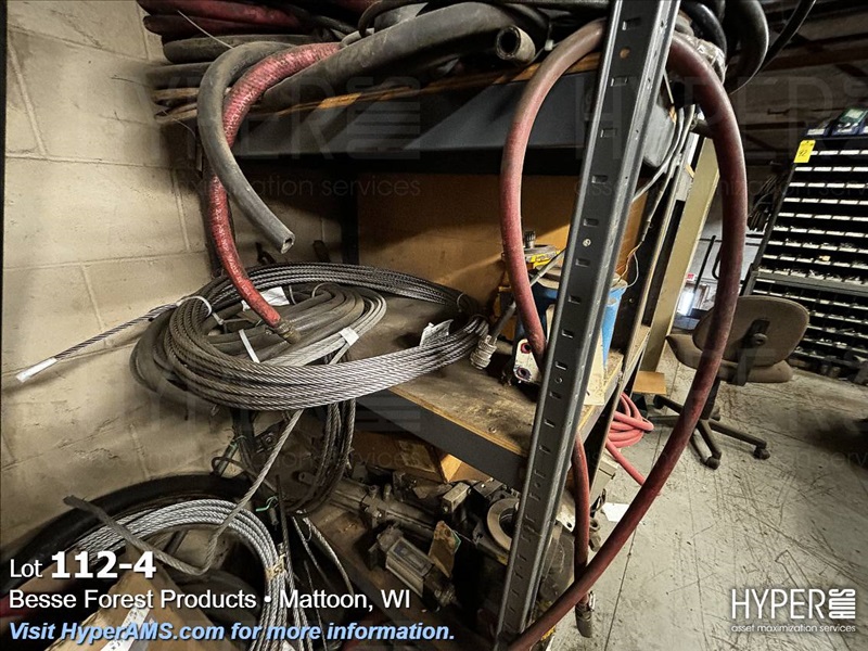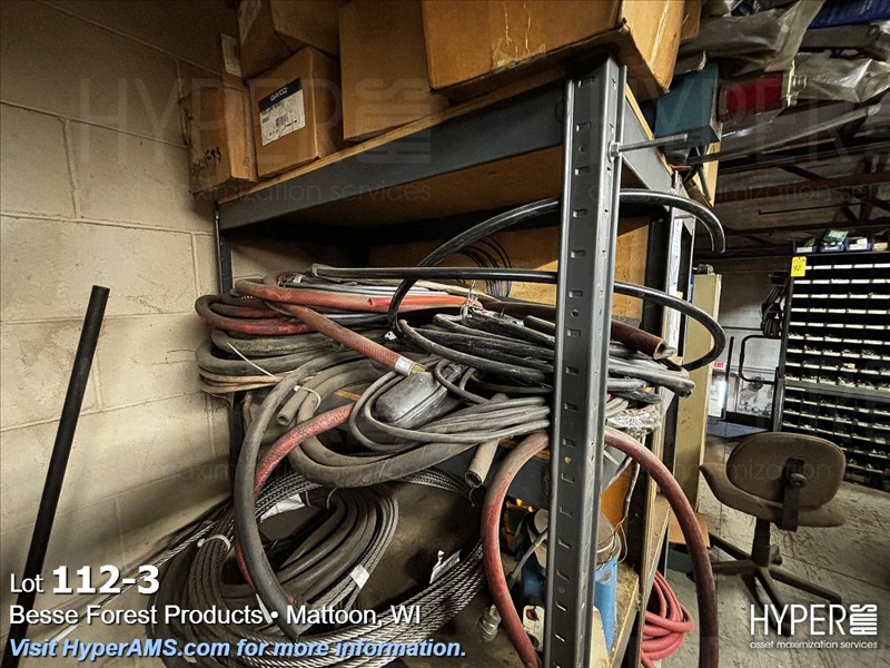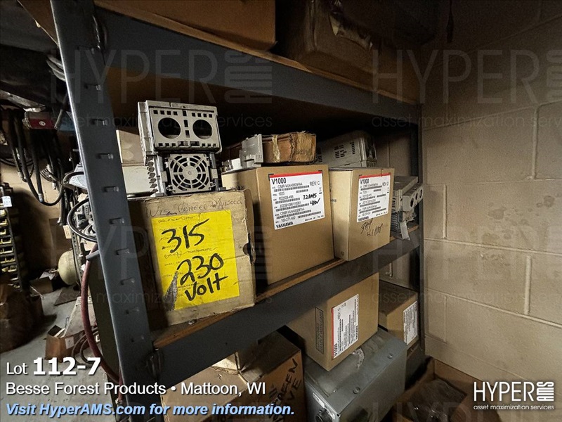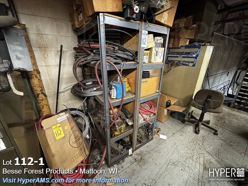 (2) SHELF UNITS WITH CONTENTS- (INCLUDING ON THE FLOOR FROM FILE CABINET TO LOT 113)-HOSES, CABLES DRIVES, CYLINDERS, DRIVES, YASKAWA PARTS (LOCATED ON MEZZANINE)