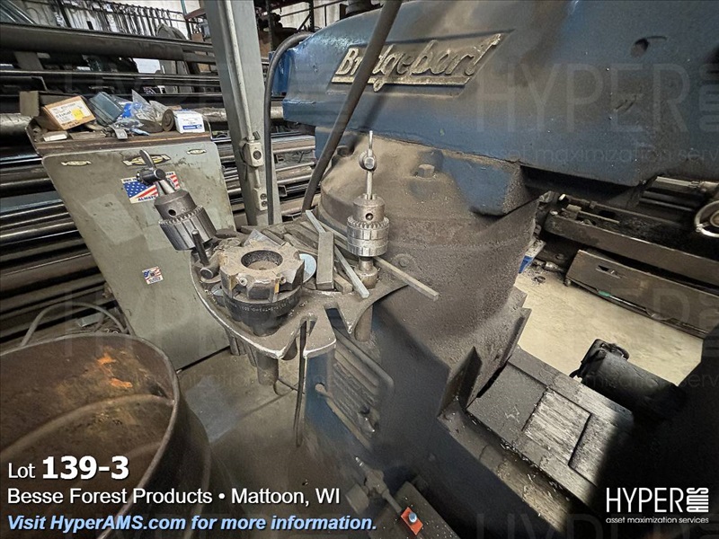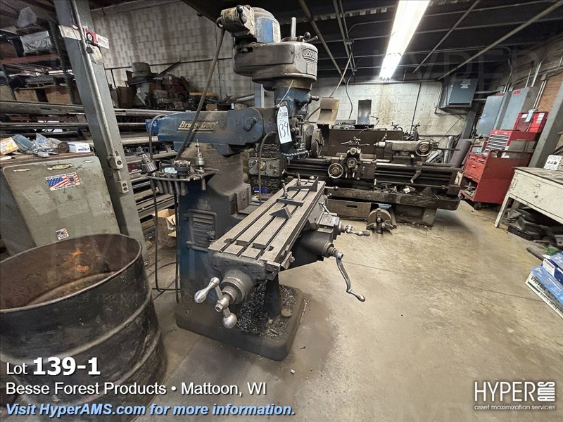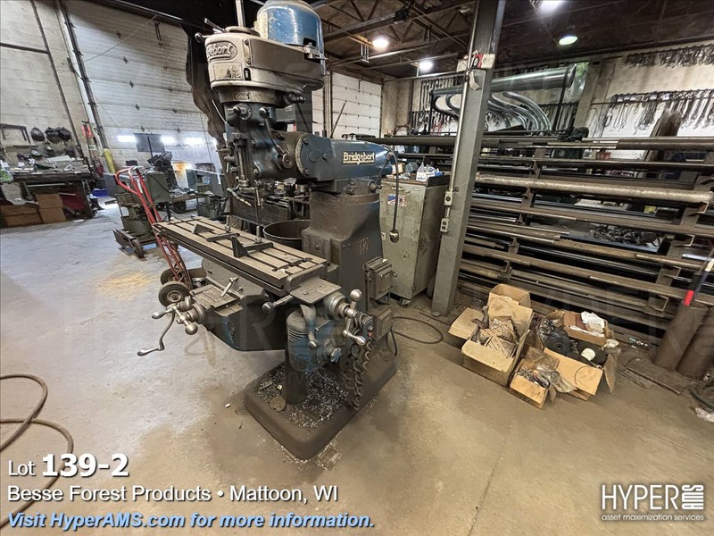 BRIDGEPORT VERTICAL MILL, 9" X 42" TABLE, POWER CROSS FEED, 1 HP, 3 PHASE, WITH TOOLING IN RACK, SER# 12/BR 72582