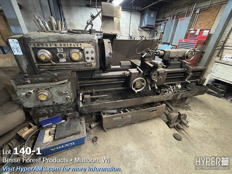 LODGE AND SHIPLEY LATHE 22" X 52", 1 3/4" THRU SPINDLE, 4 JAW 18" CHUCK, 3 JAW 14" CHUCK