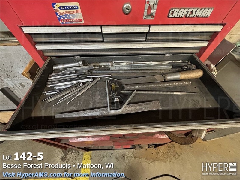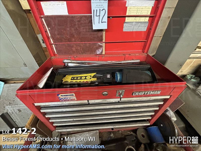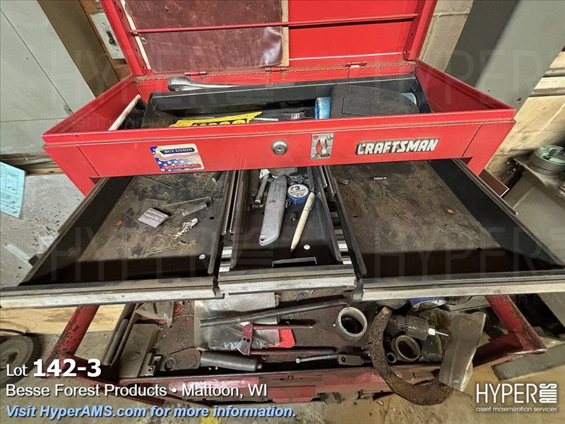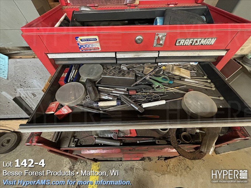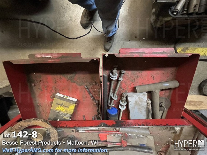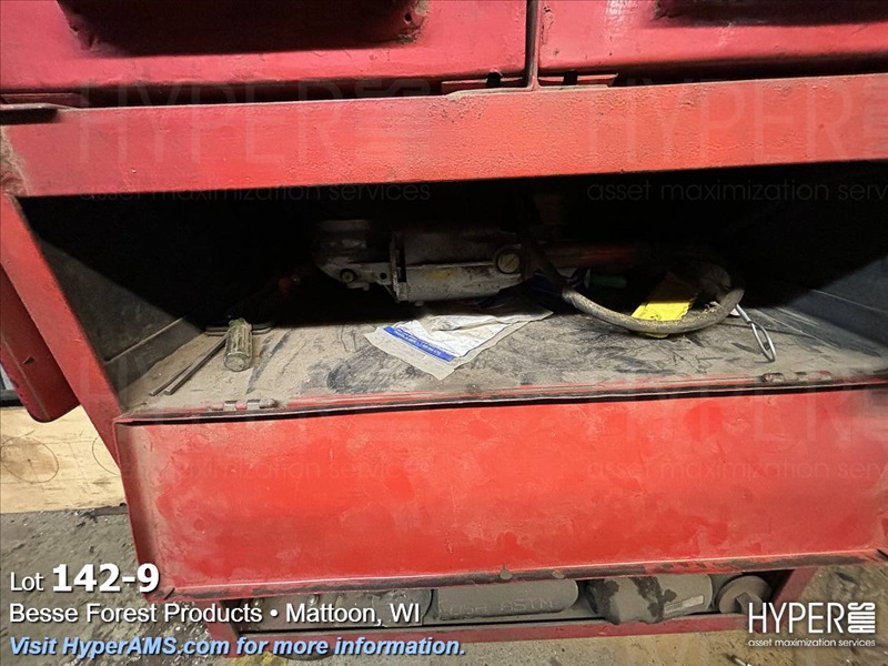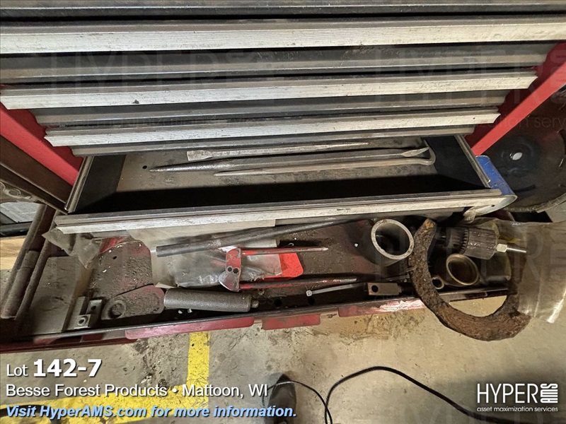 ROLL AROUND TOOL BOX WITH CONTENTS-BITS, TAPS, PRY BARS, AIR TOOLS (NEEDS REPAIRS)