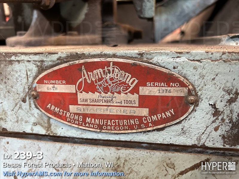 ARMSTRONG 62H BAND SAW SHARPENER, S/N 1374