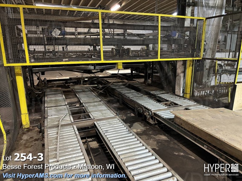 VENEER STACKING SYSTEM-DUAL 70" GRABBERS, PALLET INFEED, OUTFEED ROLLER CONVEYORS (OFFERED SUBJECT TO THE BULK BID ON THE TOTALITY LOT 250)