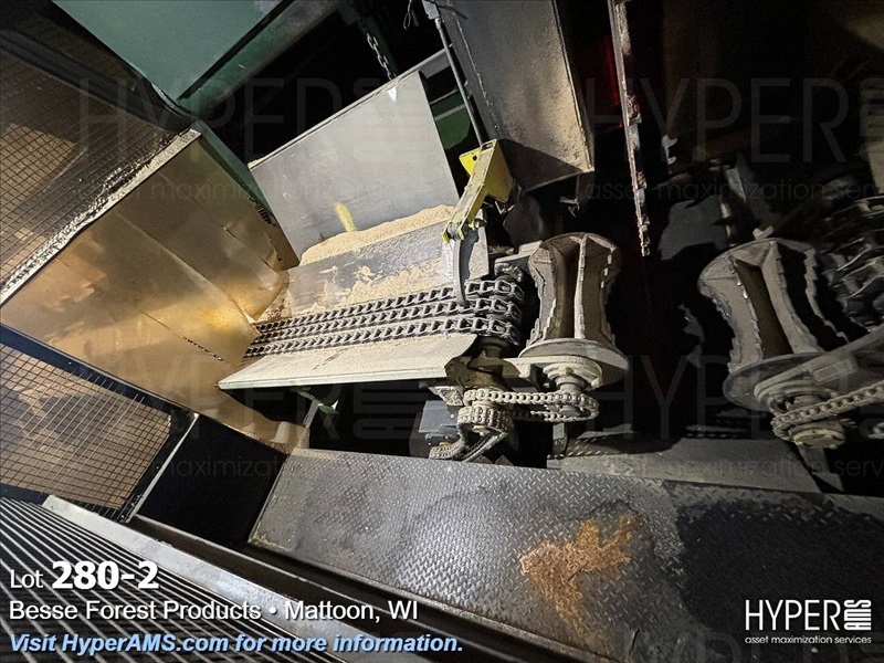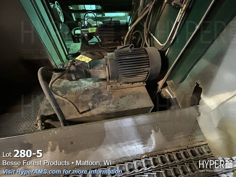 LARGE CHOP SAW WITH INFEED AND OUT FEED CONVEYOR, (2) HYDRAULIC UNITS, OUT FEED WITH KICK OFF AND CONTROL BOOTH