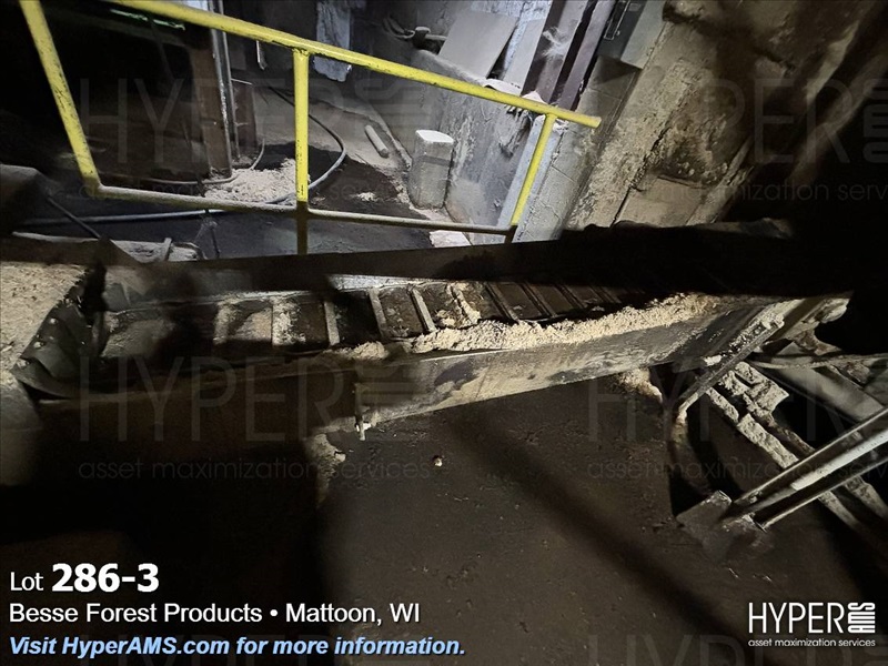 MONGOMERY BLOCK END HOG , 150 HP, HAMMER HOG, 21"X34" INLET OPENING, WITH H CHAIN OUTLET CONVEYOR APPX. 12"X13'