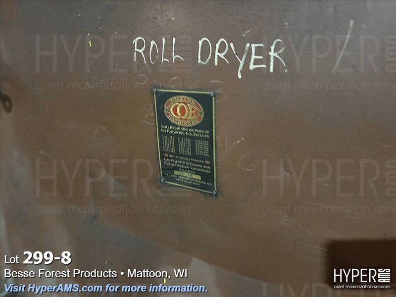 COE STEAM DRYER 184" WIDE X 36', PLUS OUTFEED 12', 3 SHELVES, S/N#52073