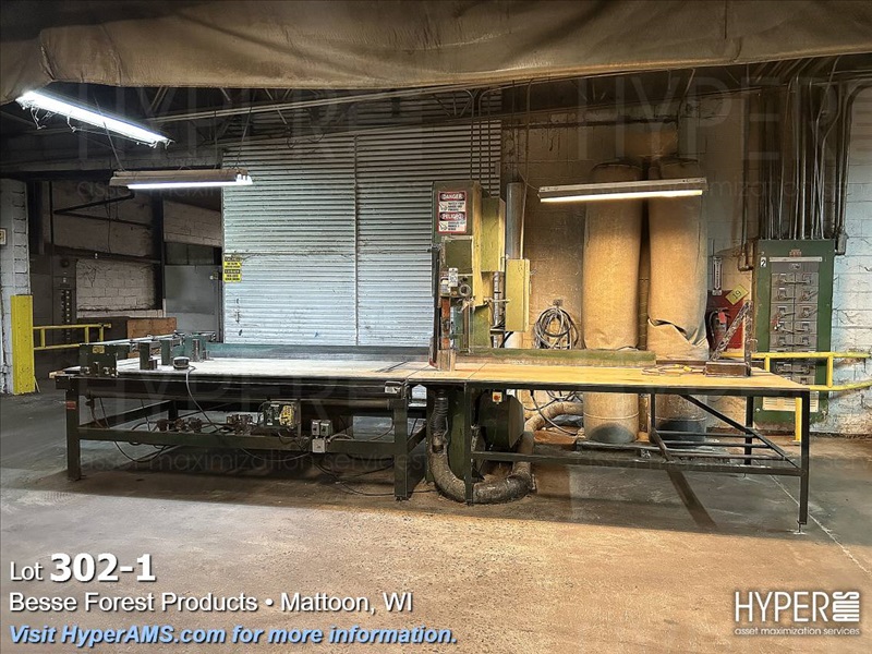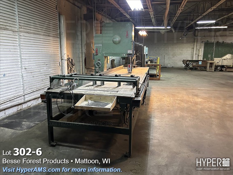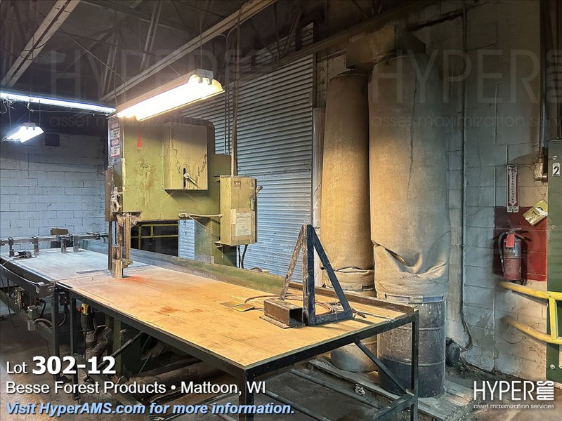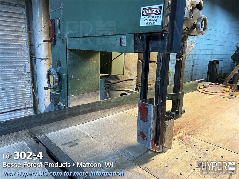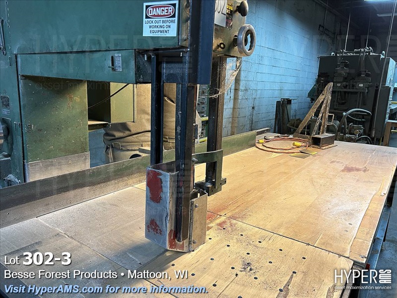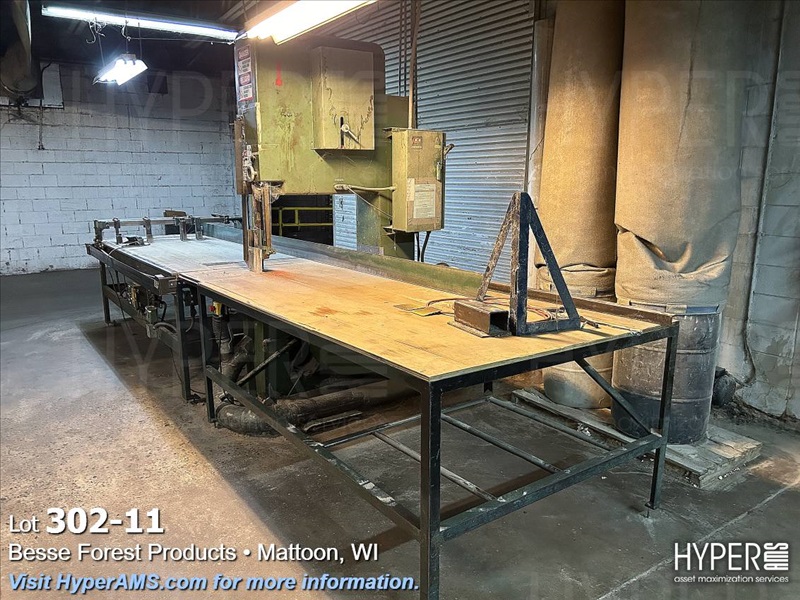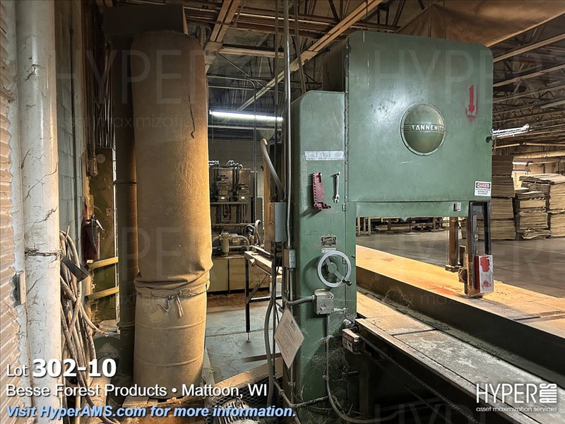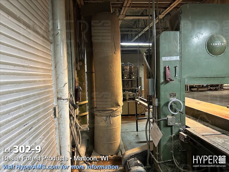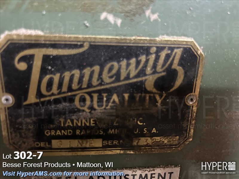 TANNEWITZ VERTICAL BAND SAW-MODEL GINE, 3' THROAT, S/N#73278, AIR FEED TABLE, 43"X16' TABLE, WITH DUST COLLECTOR