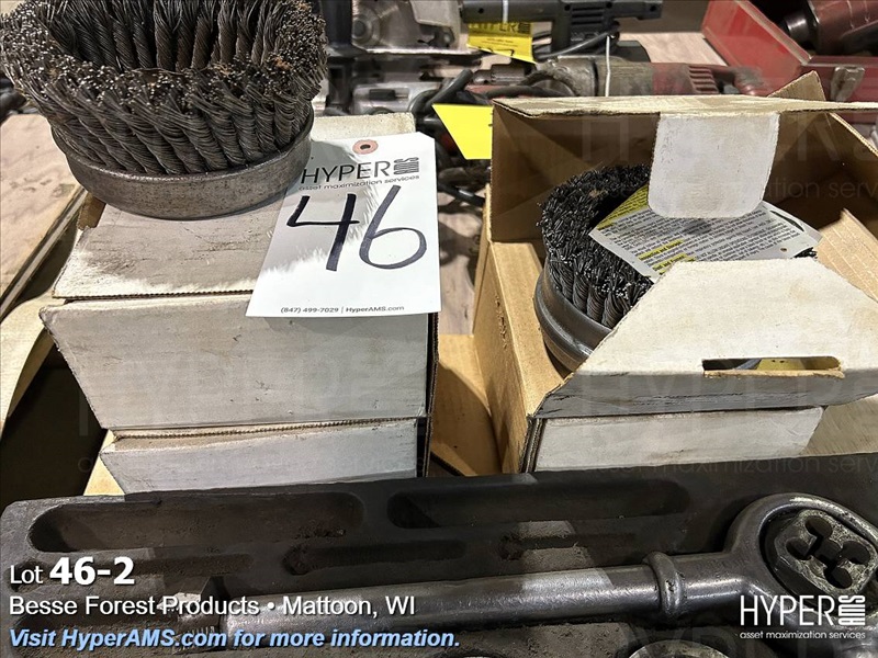 (4) NEW WIRE CUPS, (1) USED WIRE CUP