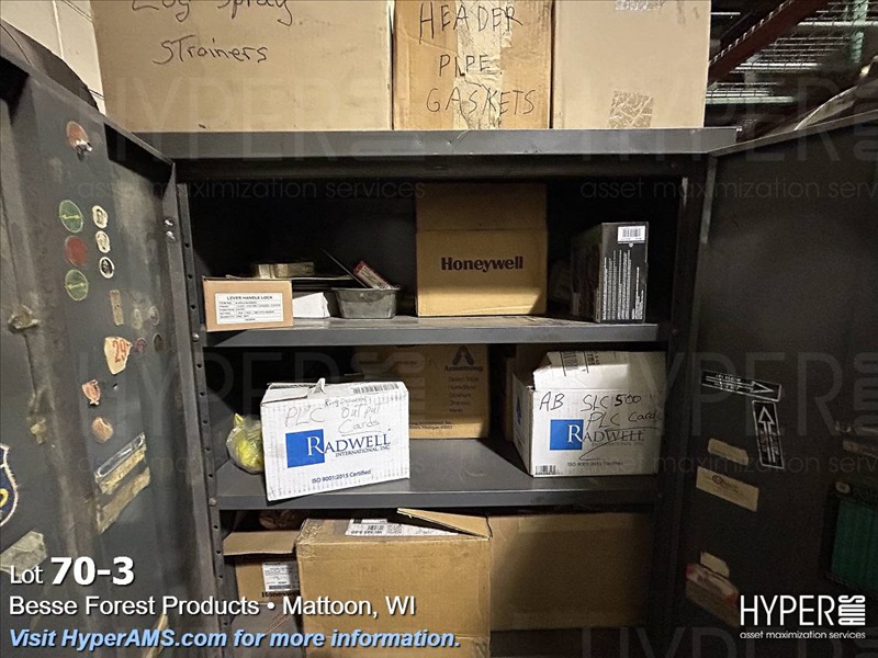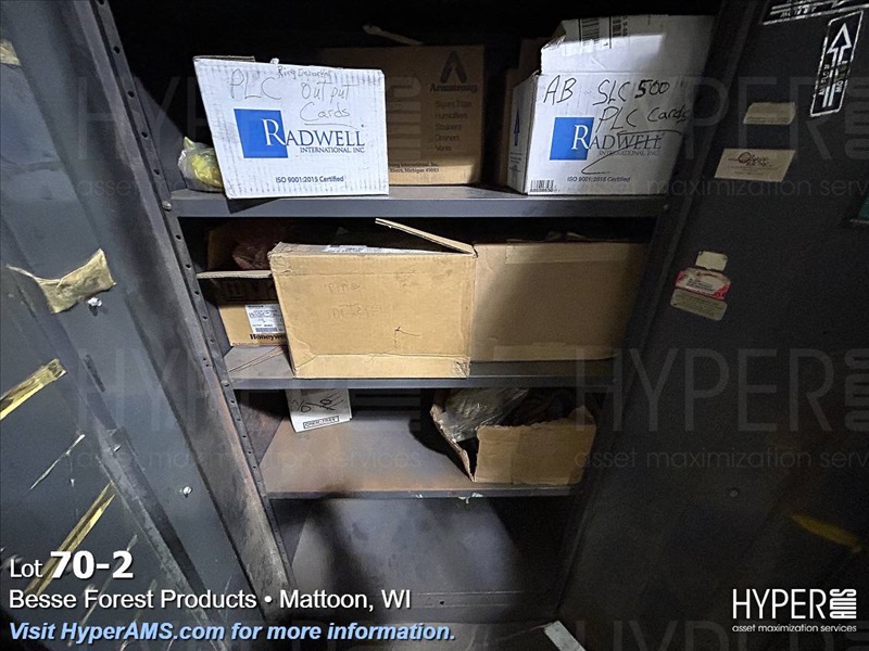 2 DOOR METAL CABINET WITH CONTENTS- PLC CARDS, SPARE PARTS