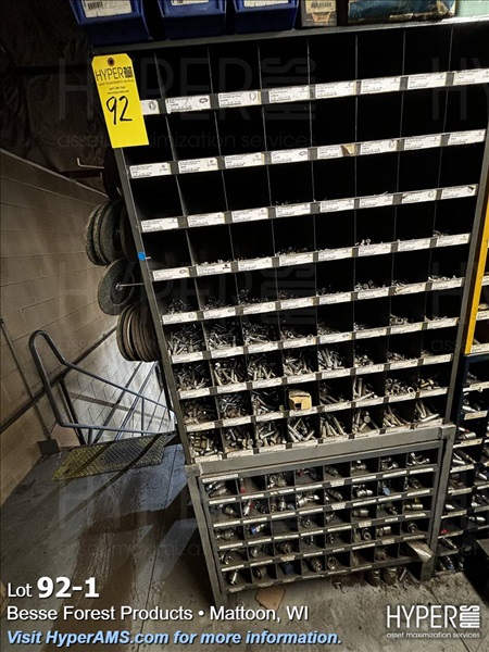 4 PARTS CABINETS (224 HOLES) OF FASTENERS, INCLUDES FLAP DISCS (LOCATED ON MEZZANINE)
