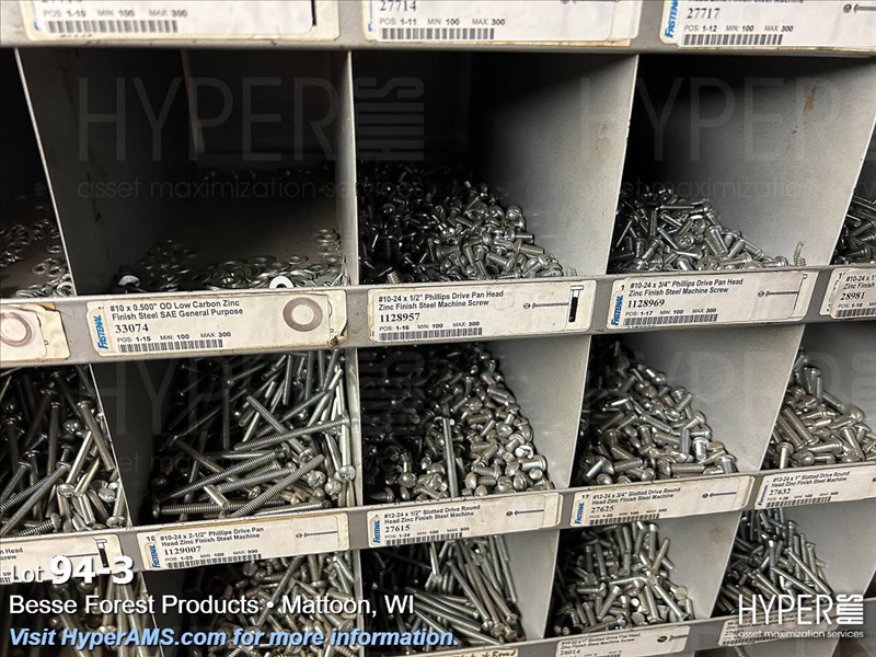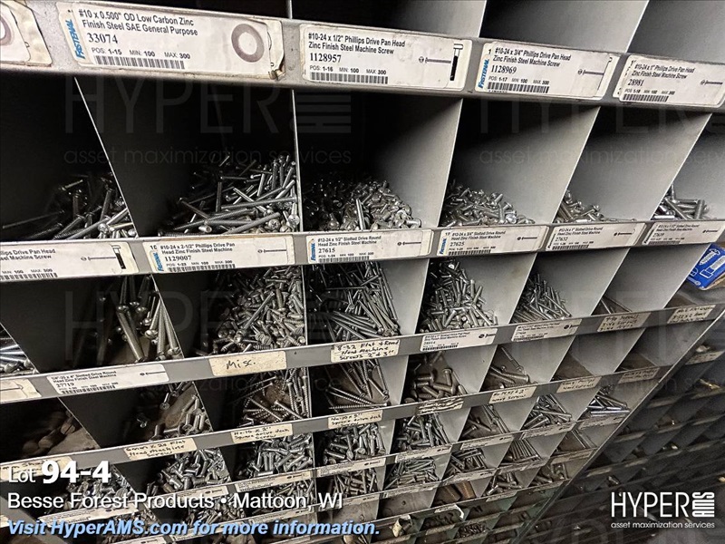 4 PARTS CABINETS (256 HOLES) OF FASTENERS (LOCATED ON MEZZANINE)