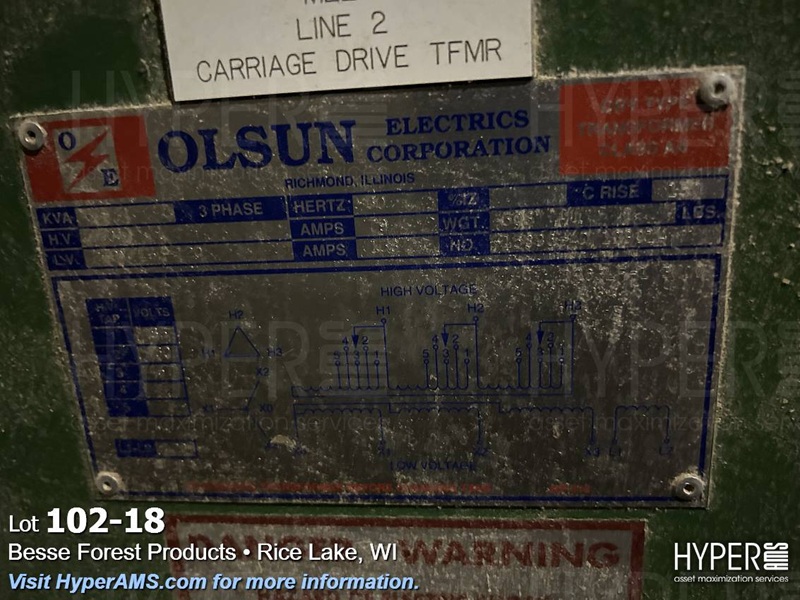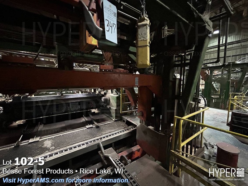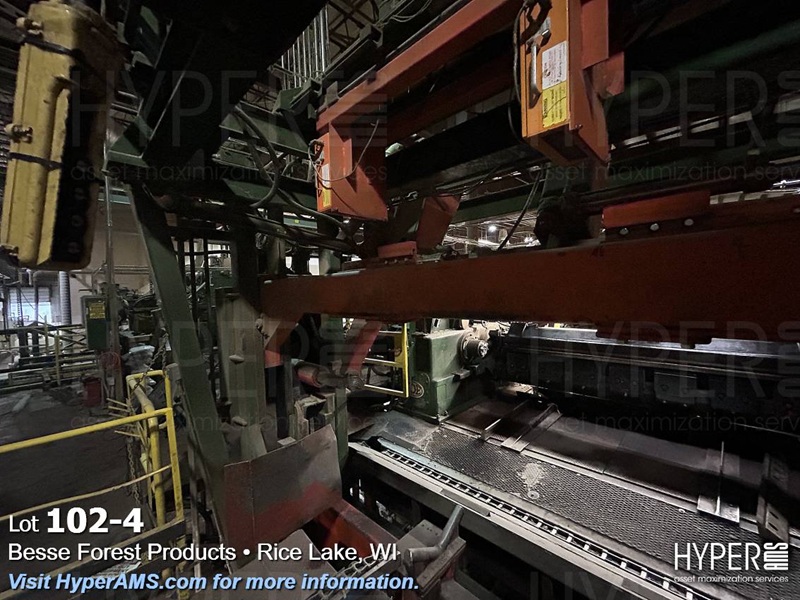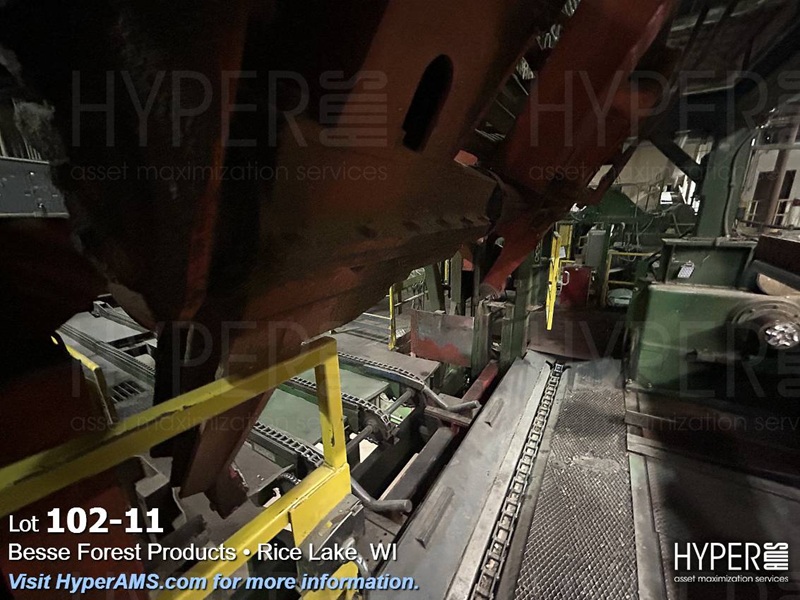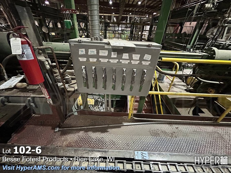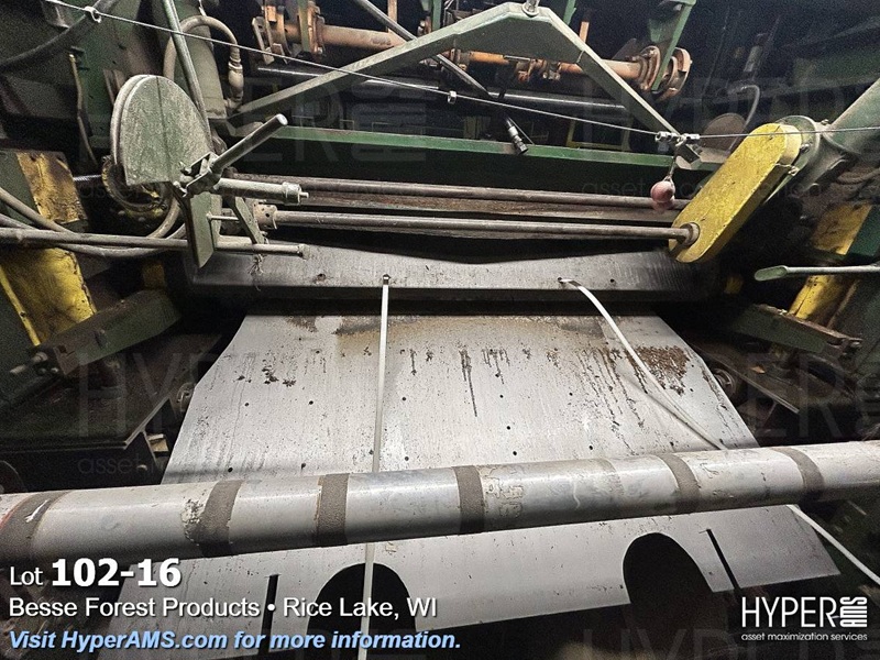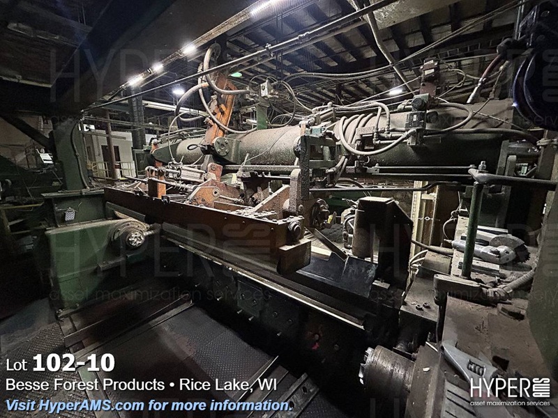 COE 110" VENEER LATHE MODEL 263, DUAL SPINDLE 4" AND 7", DIRECT PRESSURE BACK UP ROLL, XY CHARGER, SPINDLE DRIVE MOTOR REBUILT IN 2019 WITH UPGRADED SPINDLE CONTROL (SUBJECT TO THE BULK BID ON LOT 100)